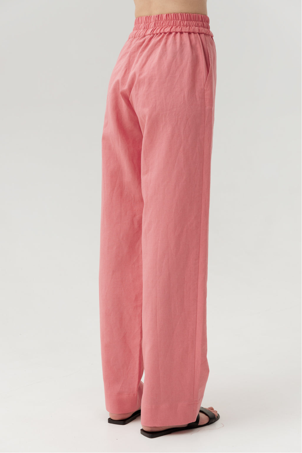Брюки з льону прямого крою. Пояс брюк – резинка. Модель з кишенями та широкими манжетами. Модель можна доповнити піджаком з льону з колекції Summer 2023, а в якості плечового виробу можна обрати майку або футболку з італійської віскози.