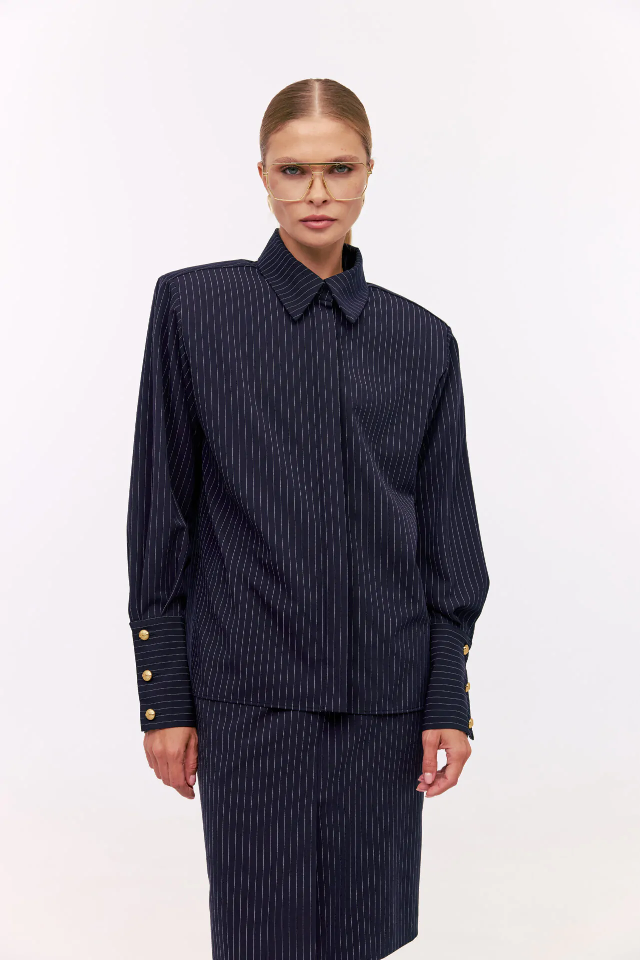 Спідниця з м’якої вовняної тканини прямого крою. Спідниця з високою лінією талії, що застібається на блискавку та гачок. Спідниця виконана на підкладці та має ззаду шліцу.
