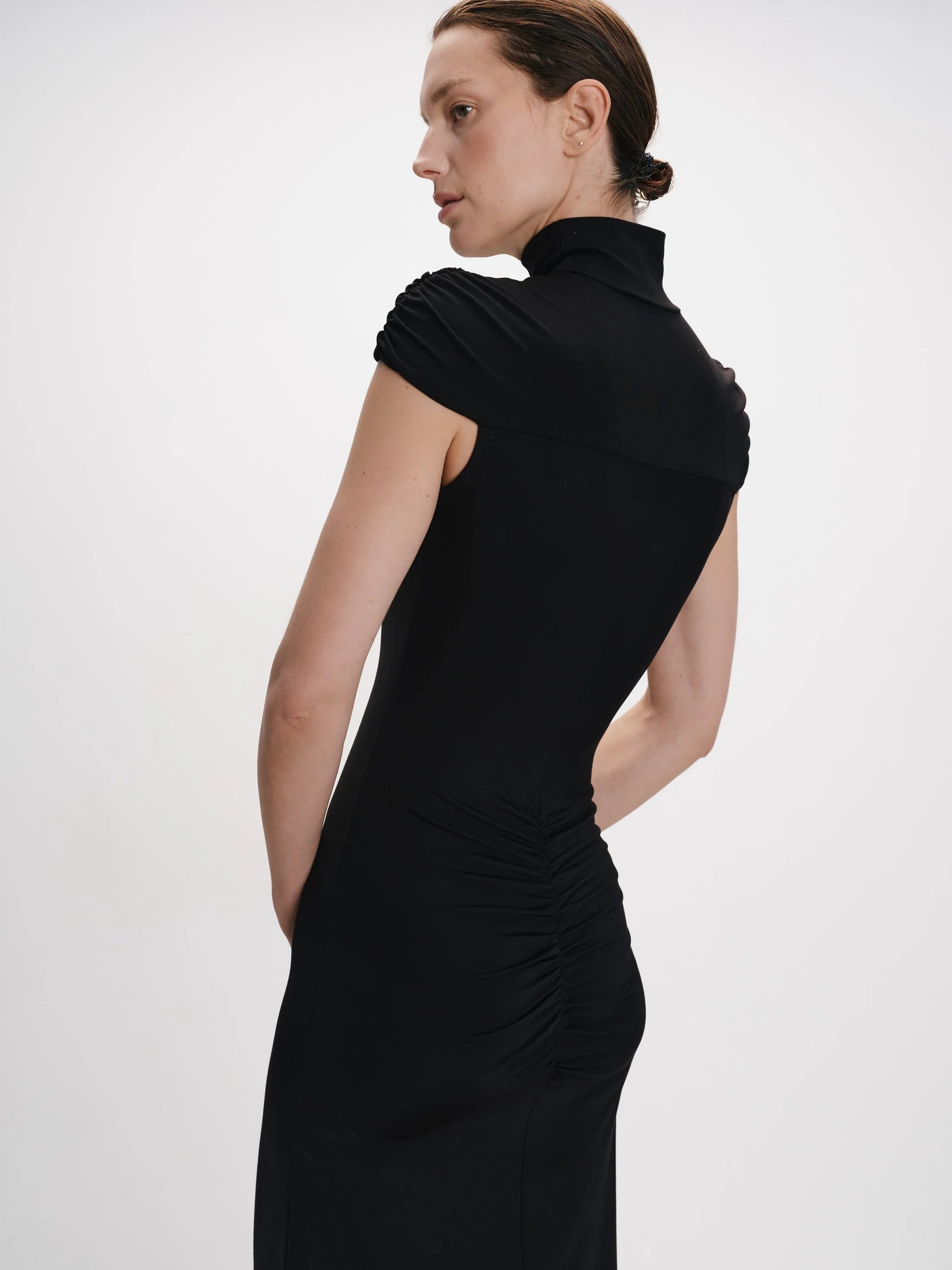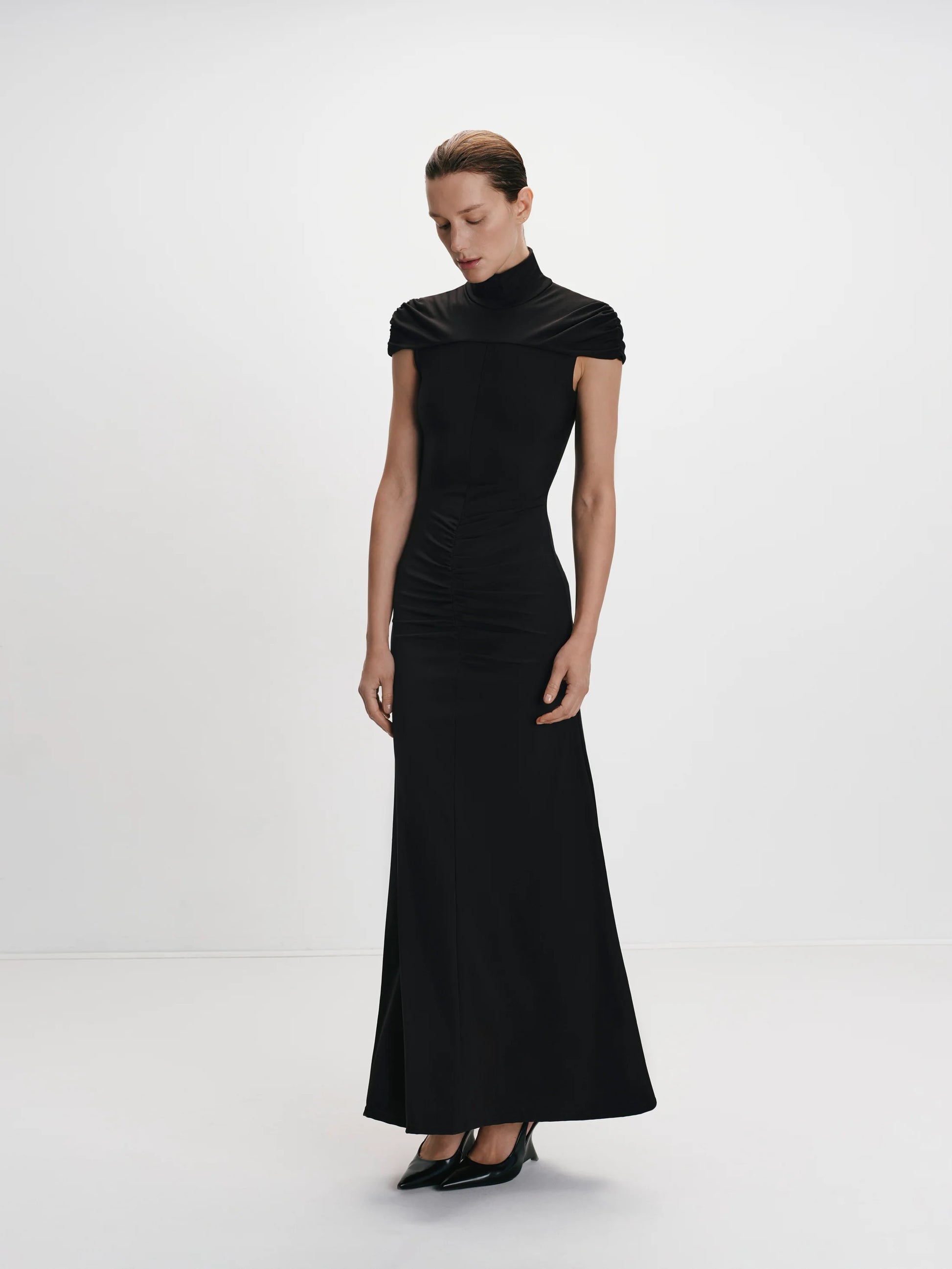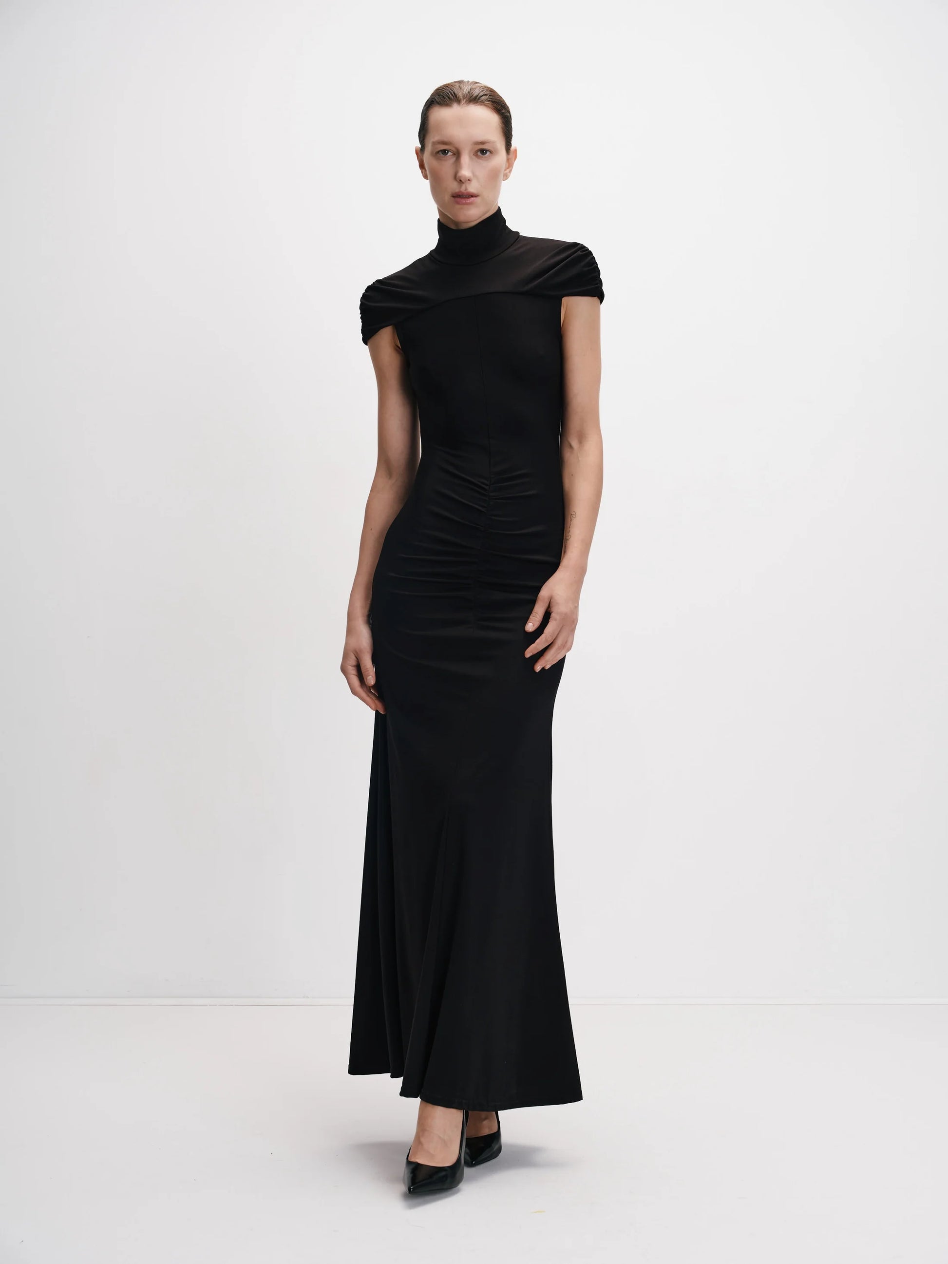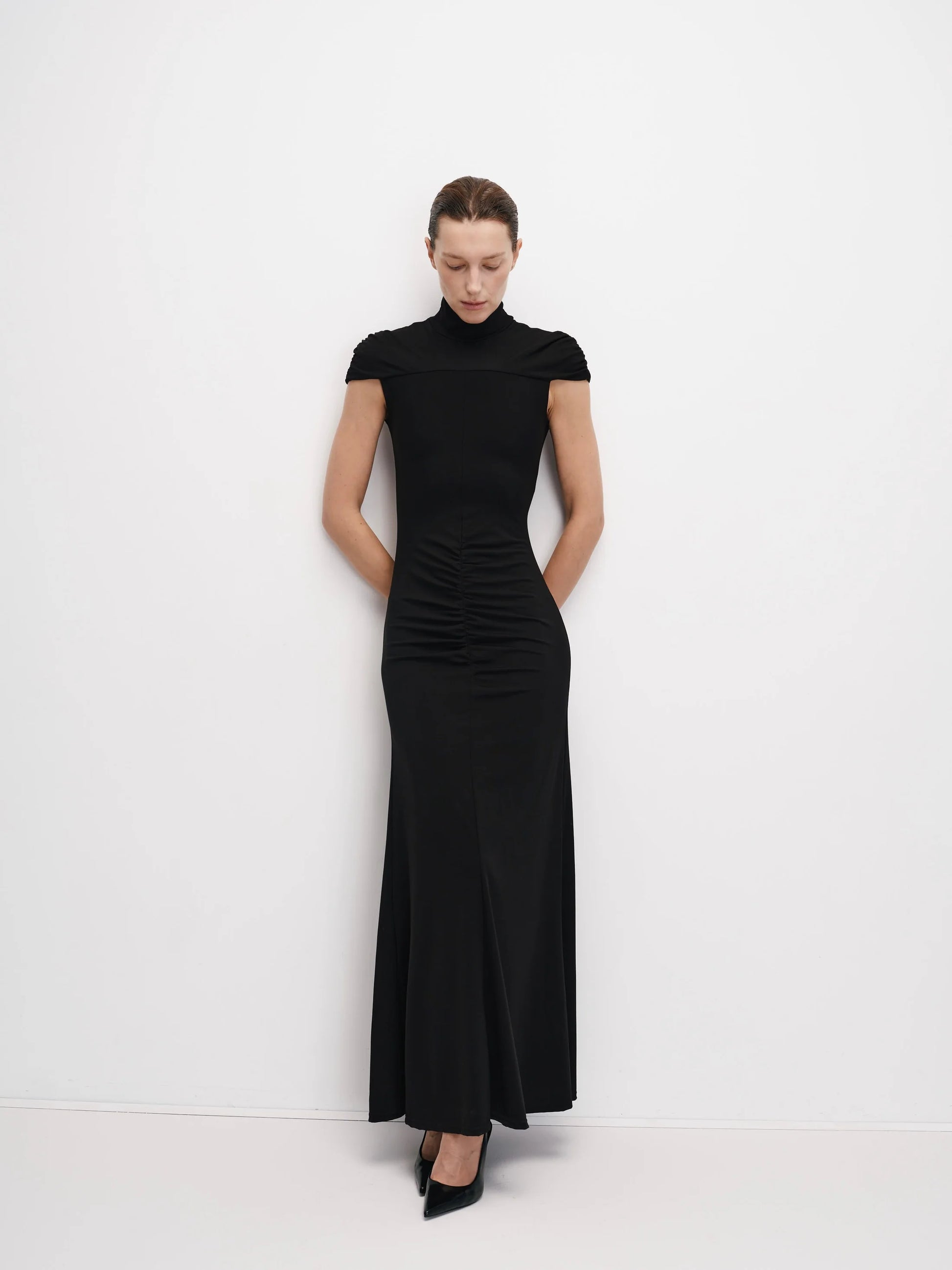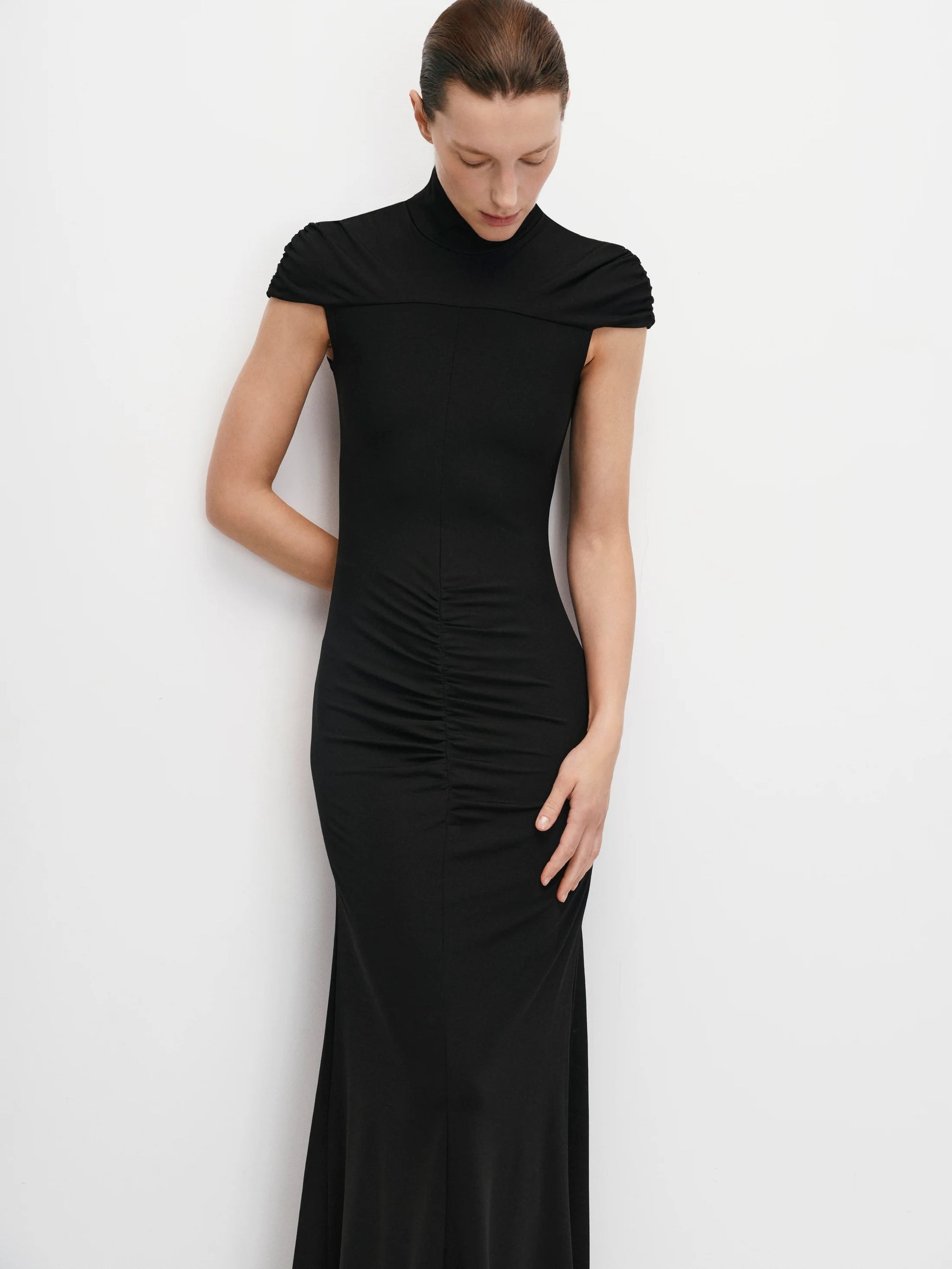 Чорна сукня з драпіруванням стане вашим безпрограшним вибором для вечірніх виходів і особливих подій. Її можна доповнити мінімалістичними прикрасами та взуттям на підборах, щоб підкреслити лаконічність, або ж яскравими аксесуарами для створення виразного акценту.