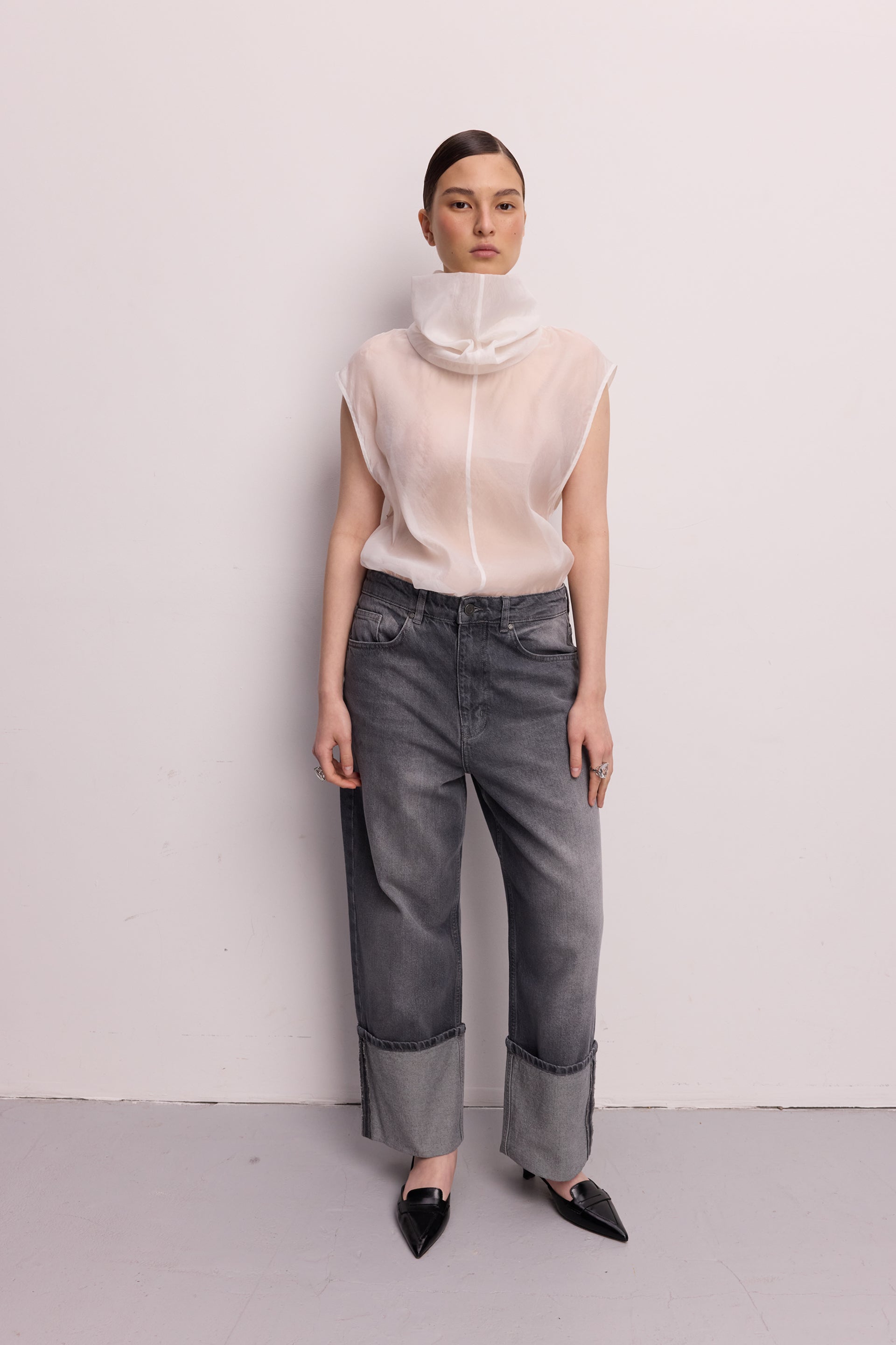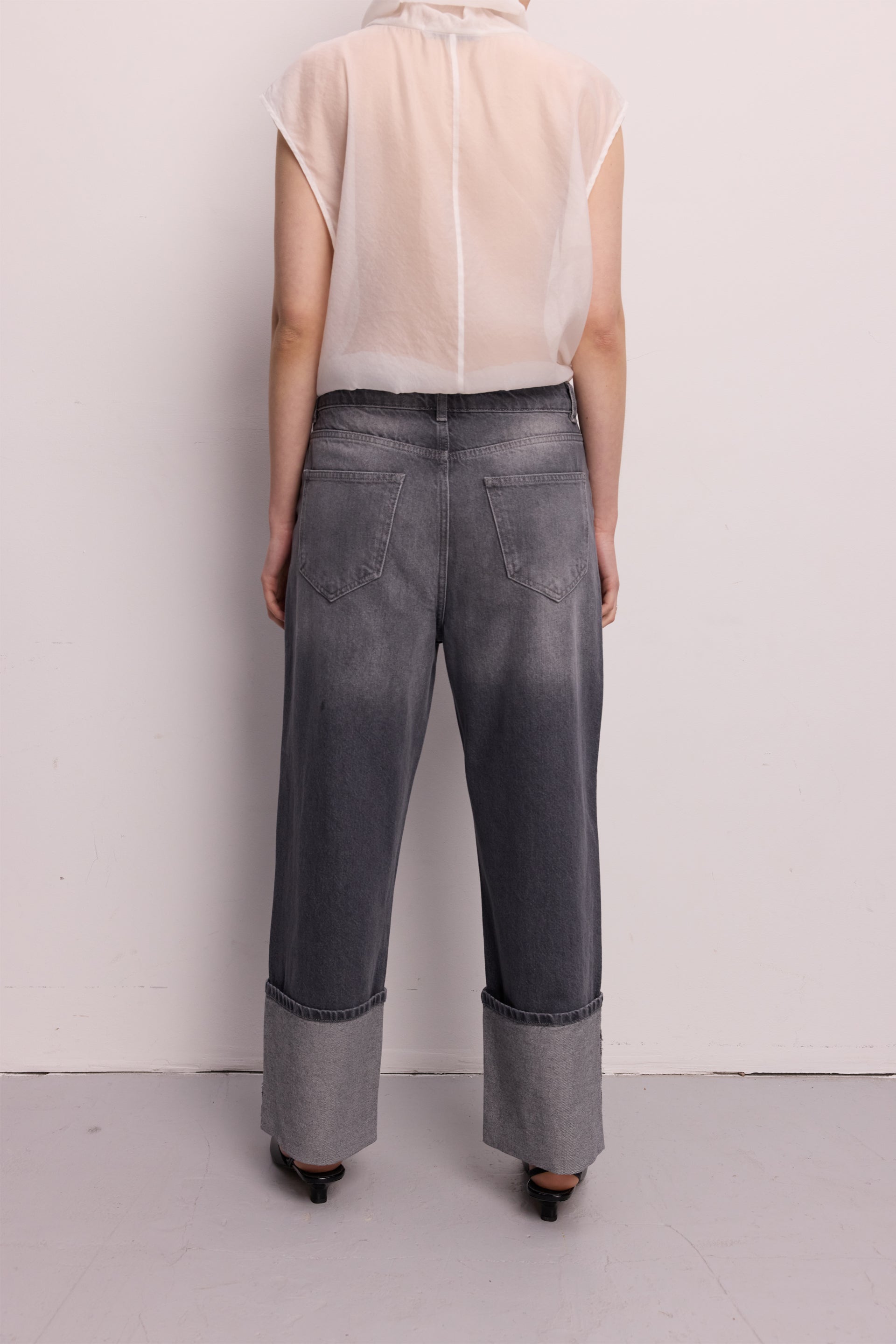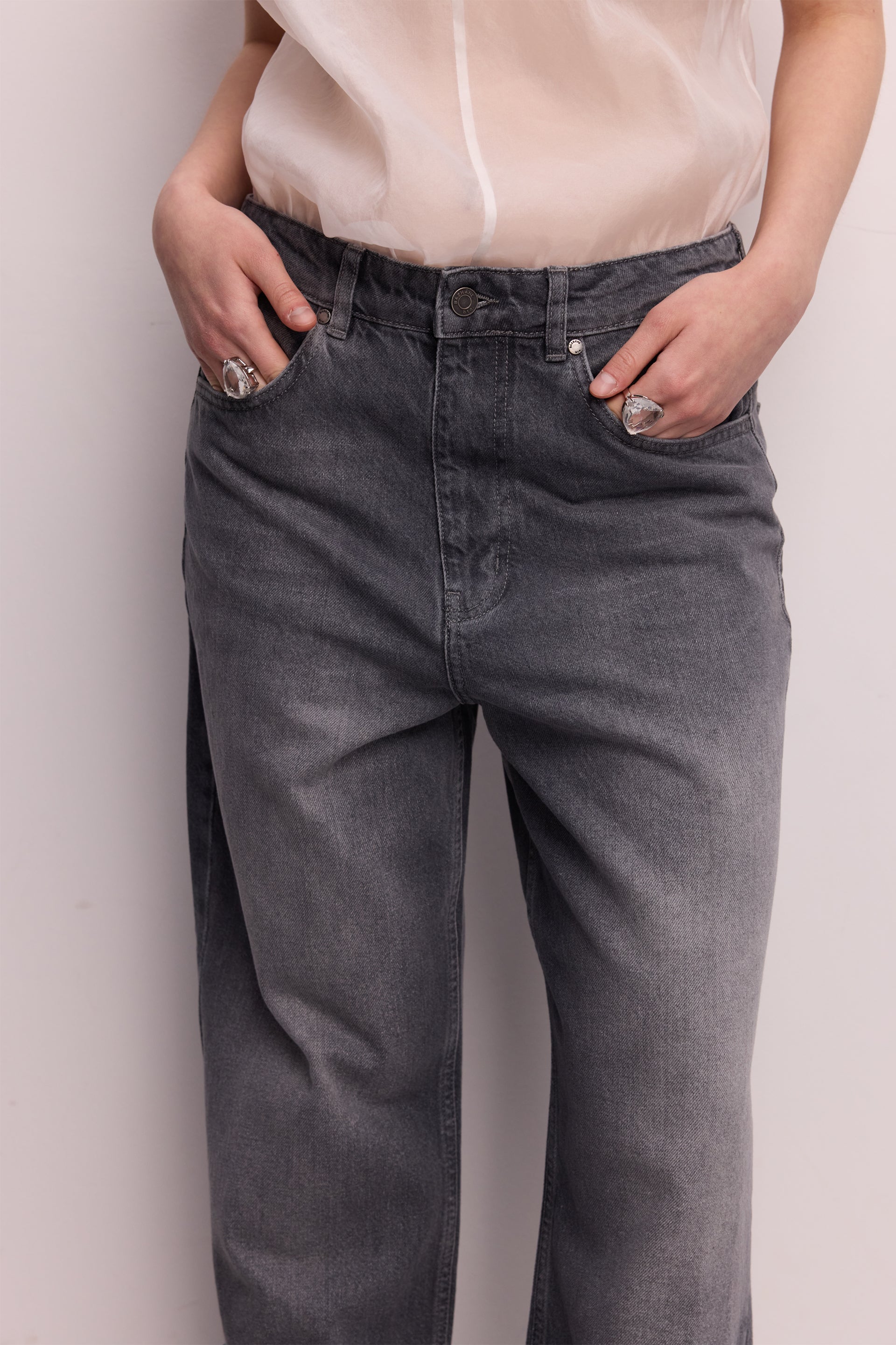 Джинси Boyish jeans — це поєднання актуального вільного крою та грубої текстури деніму. Модель із середньою посадкою та широкими відворотами створює effortless-силует, що нагадує вінтажні чоловічі джинси. Бавовняний денім зберігає форму та додає характеру кожному руху.