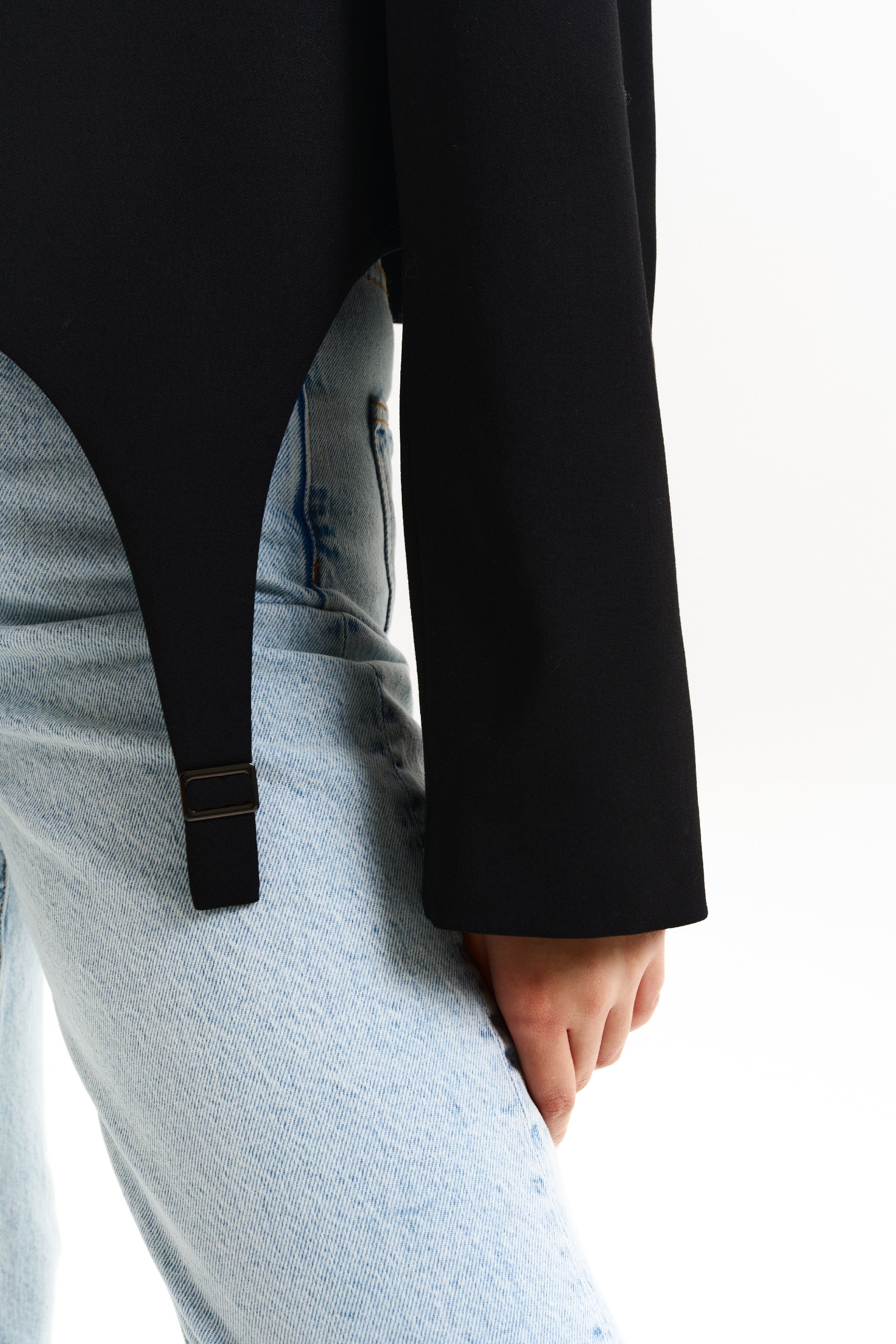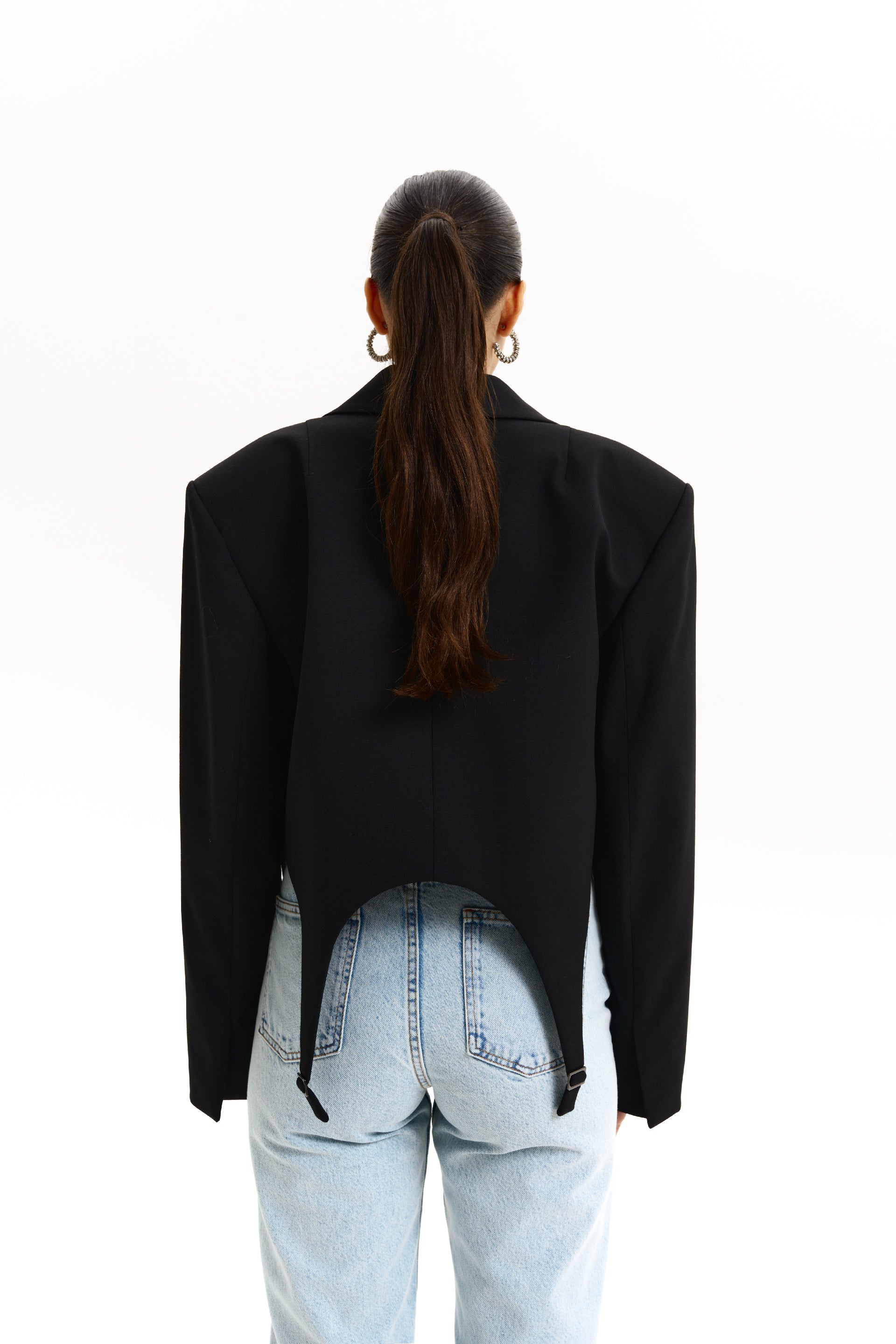 Жакет кроп з гартерами. Виготовлений з virginwool, що поєднує в собі елегантність і тепло. Цей стильний жакет стане ідеальним доповненням до будь-якого осіннього образу, додаючи не тільки теплоту, а й особливий акцент. Завдяки своїй витонченій посадці та деталі у вигляді гартерів, він створює чудовий силует. Гармонійно поєднується з брюками, спідницями чи лонгслівами для завершеного образу.
