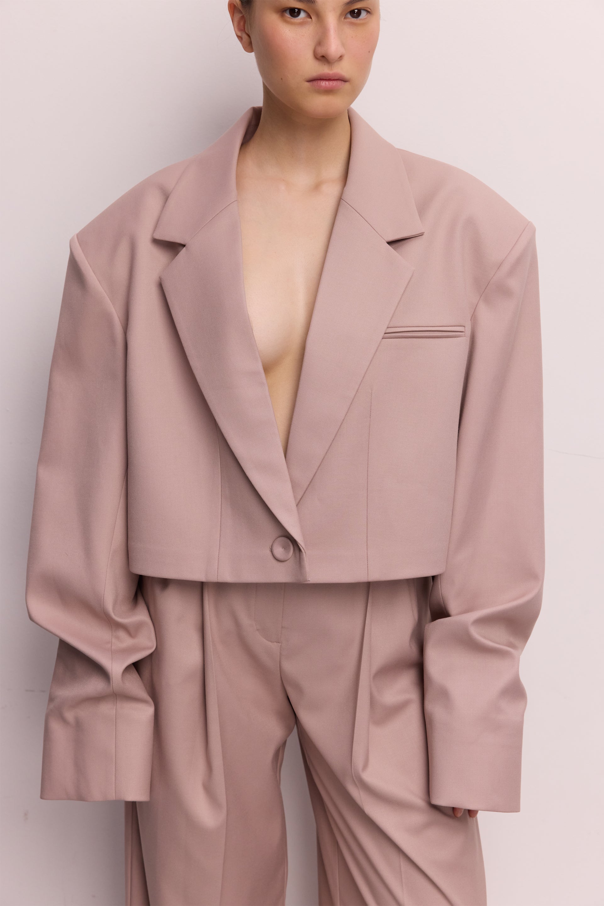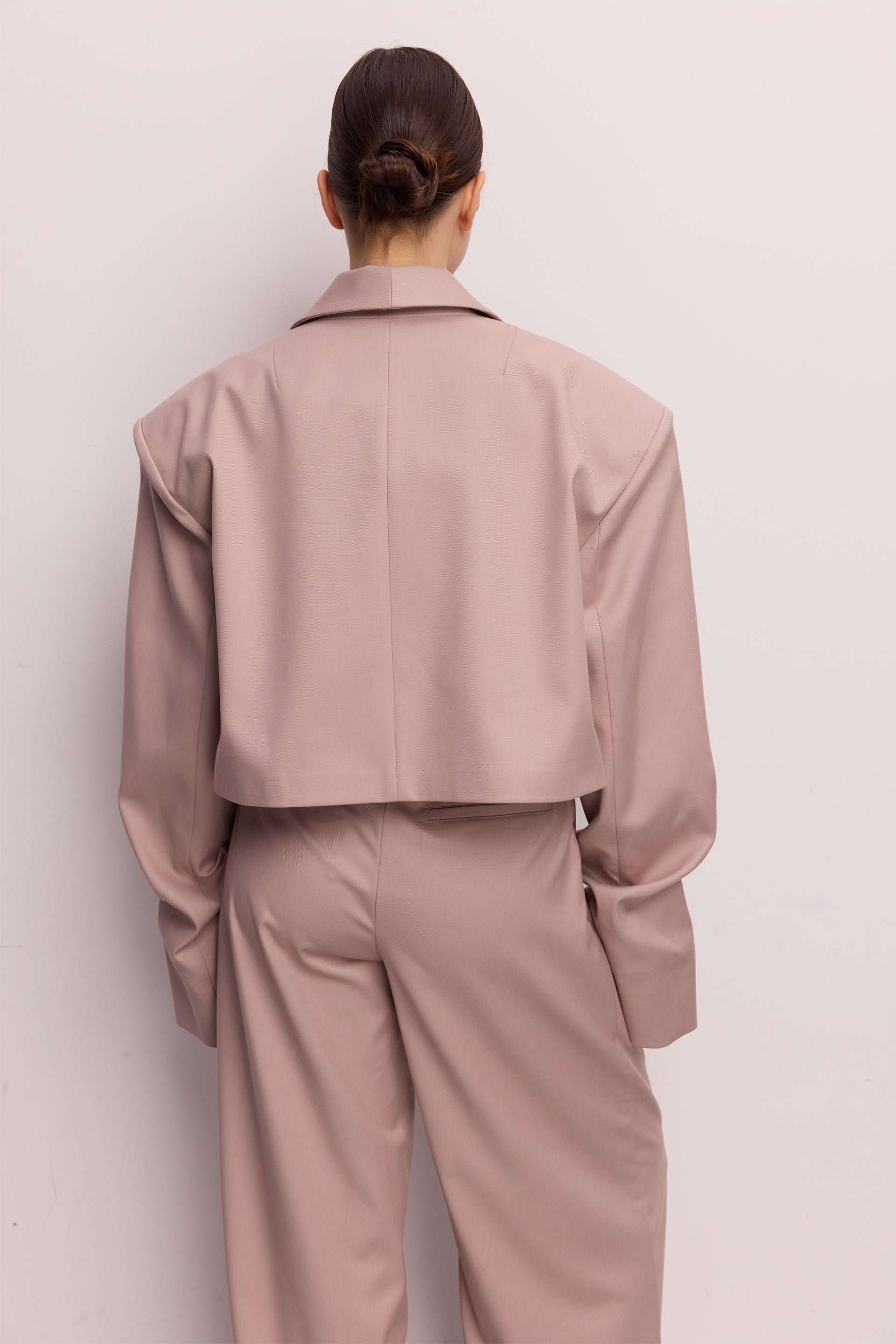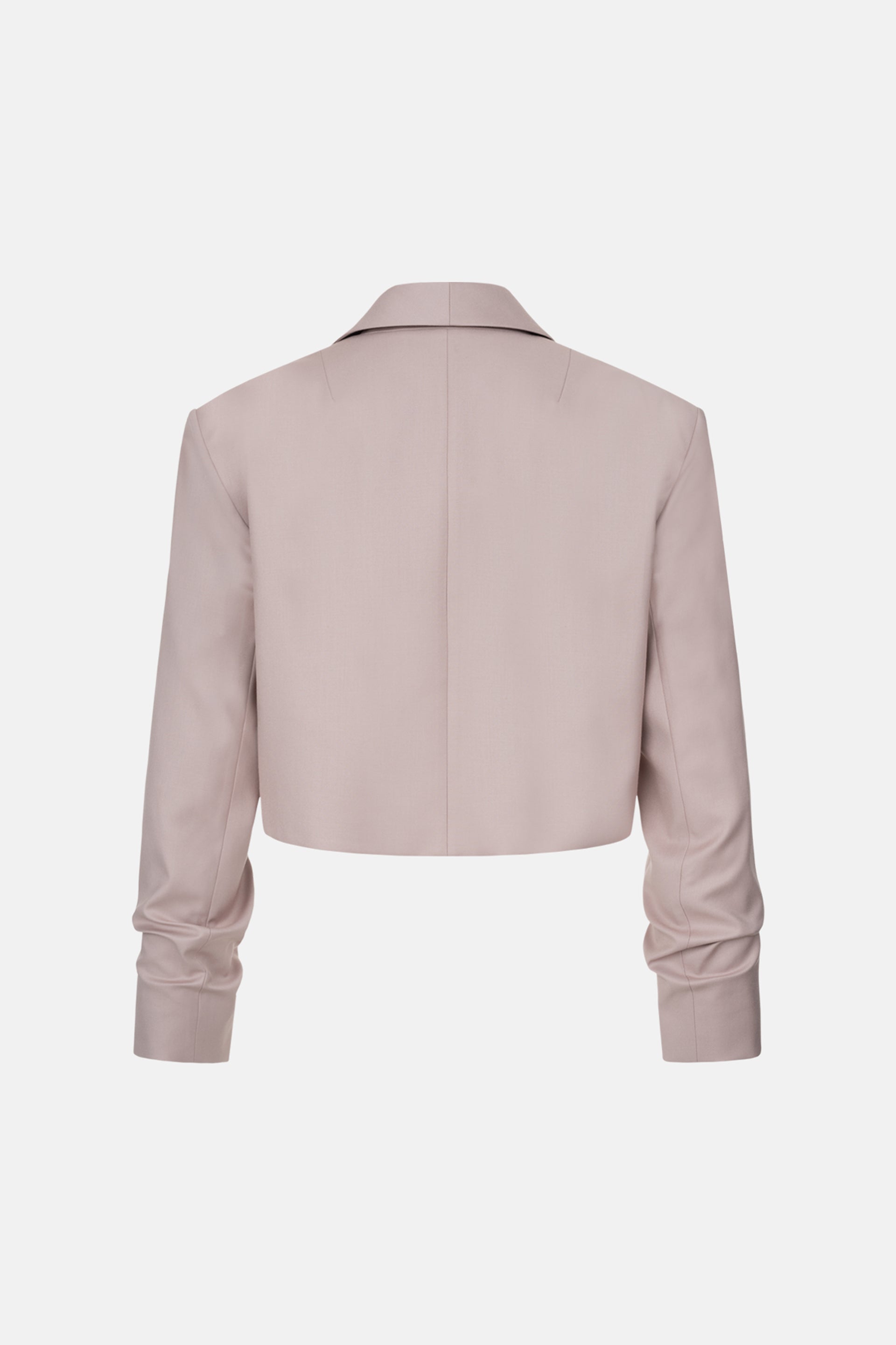 Жакет кроп із елегантною збіркою на рукаві. Виготовлений з міксу віскози та котону, що дарує відчуття комфорту та легкості, зберігаючи стильний вигляд. Ідеальний вибір для створення елегантних образів, які підходять як для офісу, так і для вечірніх виходів. Гармонійно поєднується з брюками, спідницями або класичними лонгслівами для завершеного вигляду.