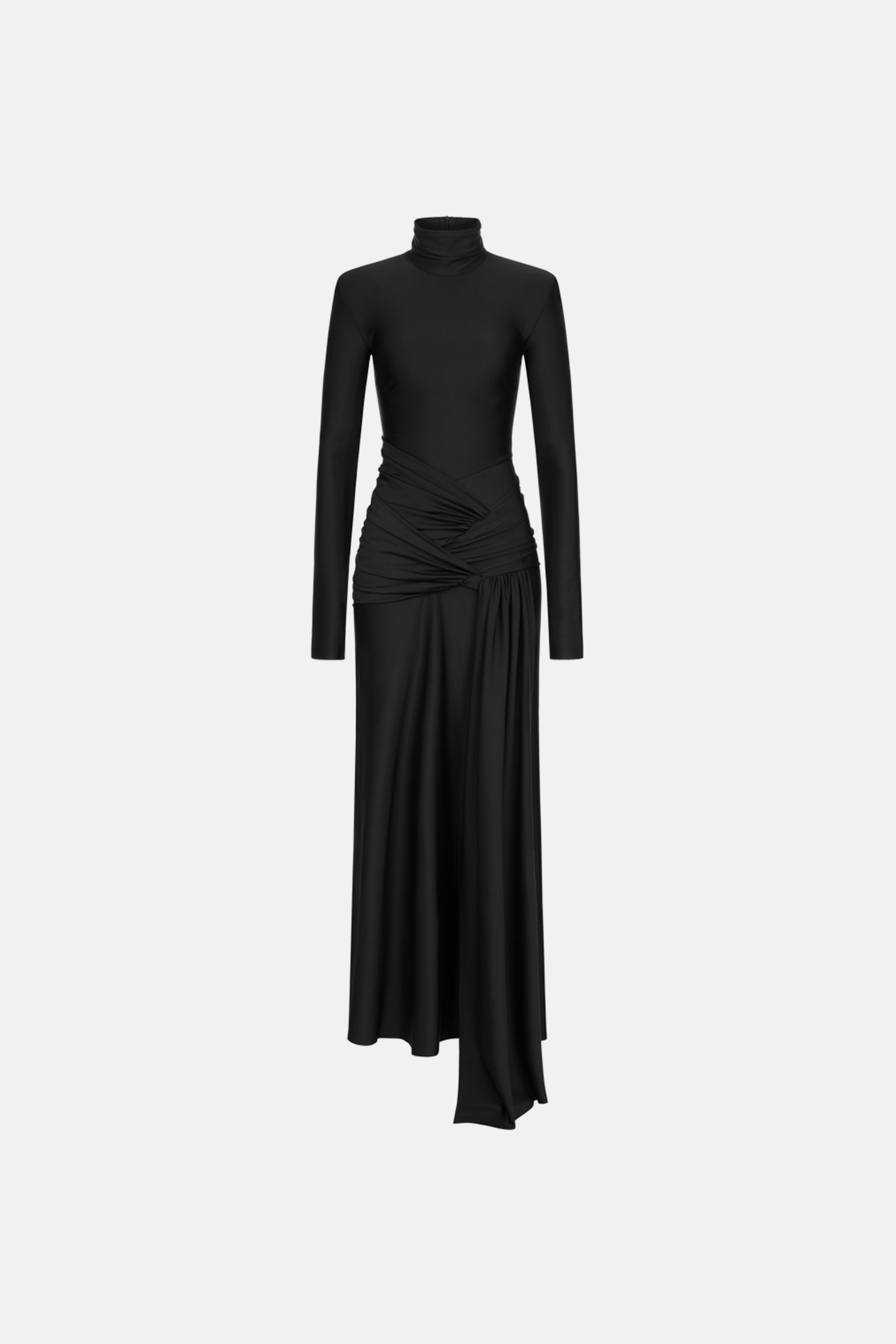 Сукня Midnight glide dress максі з елегантним силуетом. Виготовлена з нейлону та еластану, що забезпечує еластичність та комфорт. Ідеальний вибір для вечірніх виходів або урочистих подій. Гармонійно виглядає з класичними туфлями, стильним жакетом або вишуканими аксесуарами.