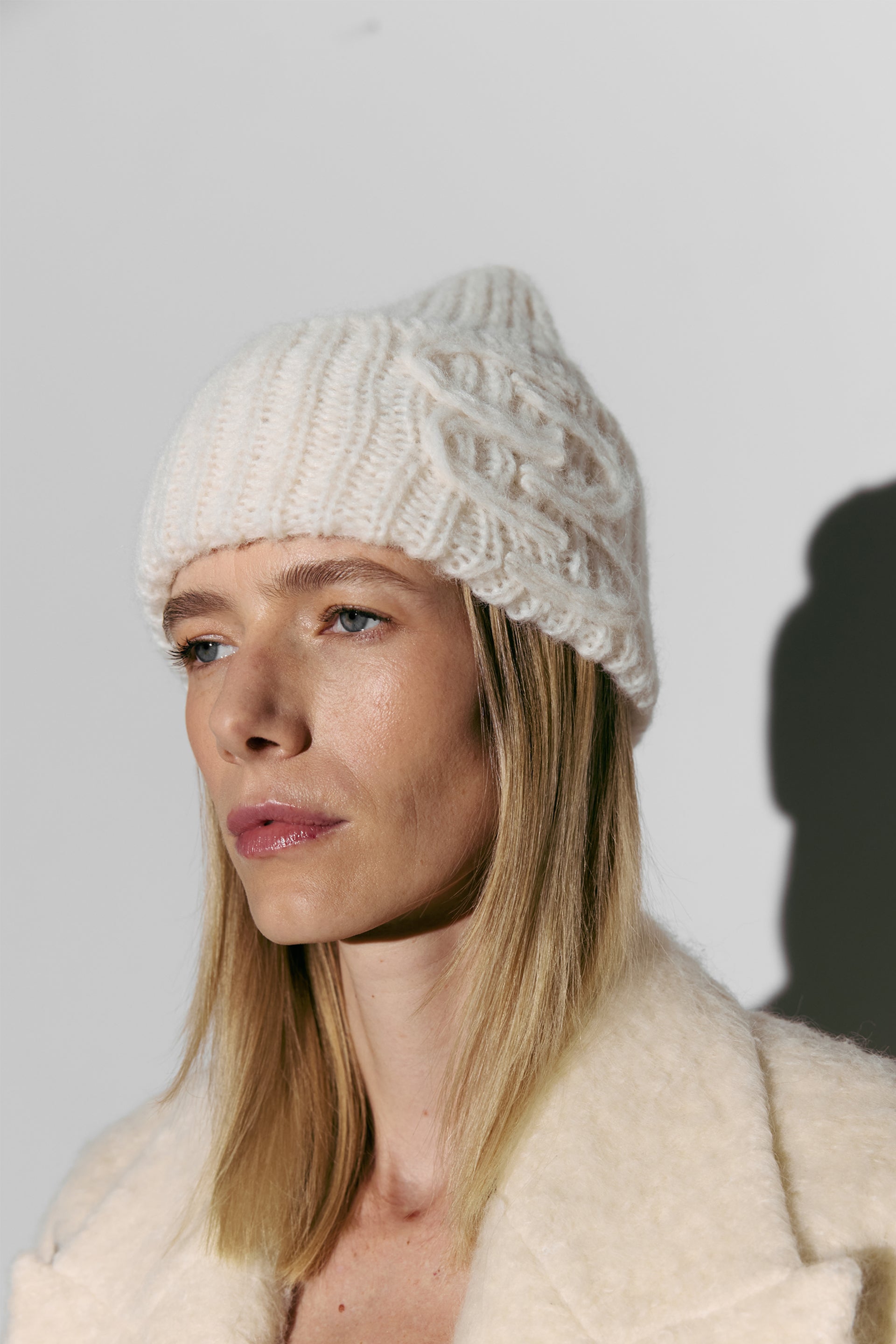 Шапка з м'якою текстурою. Виготовлена з альпаки, вовни та поліаміду, що забезпечує теплоту та комфорт. Ідеальний вибір для холодних днів, додаючи стиль та затишок до вашого образу. Гармонійно поєднується з пальтами, куртками та зимовими аксесуарами.