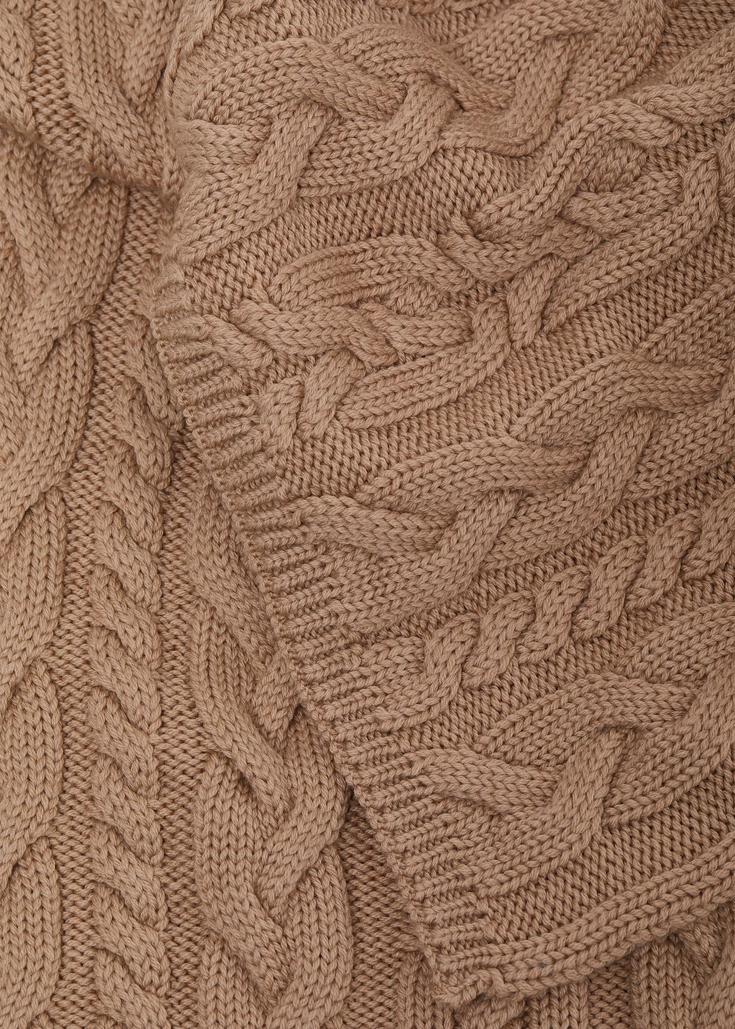 М'який в'язаний шарф, декорований тасьмою. Шарф виготовлений з ніжної вовни з додаванням кашеміру. Поєднуйте з шапкою в тон.