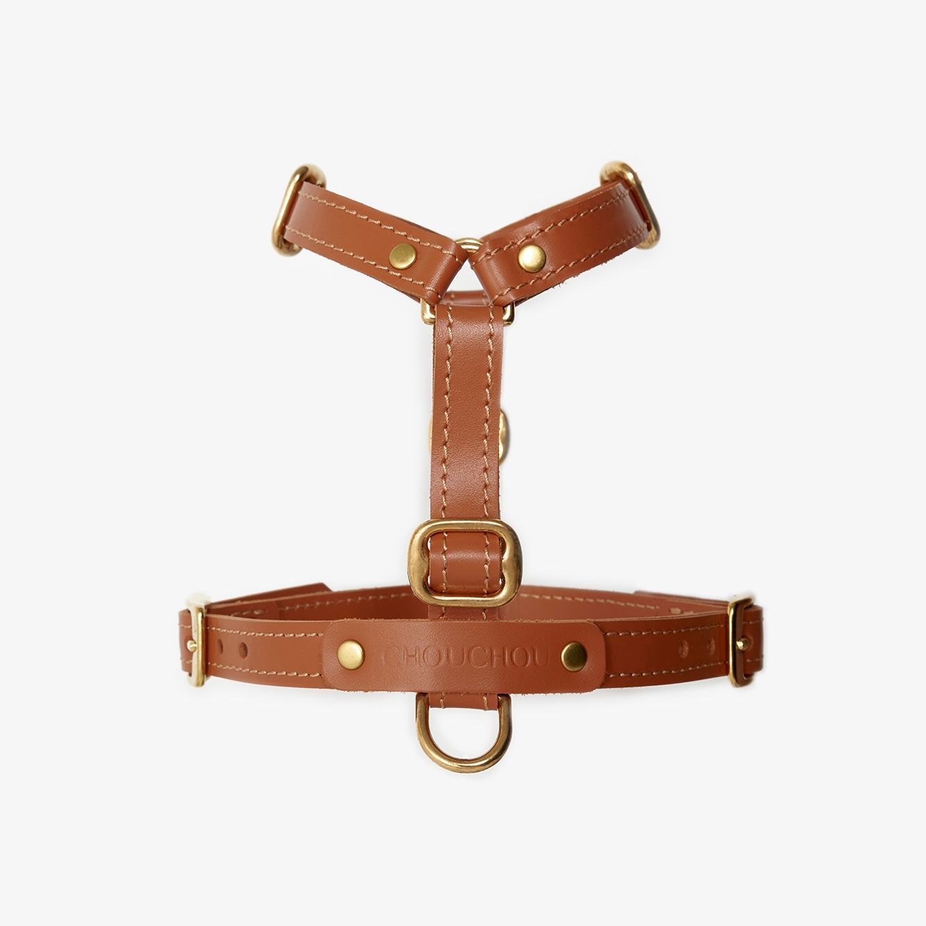 CHOU CHOU Шлея для собак шкіряна анатомічна руда "Classy"