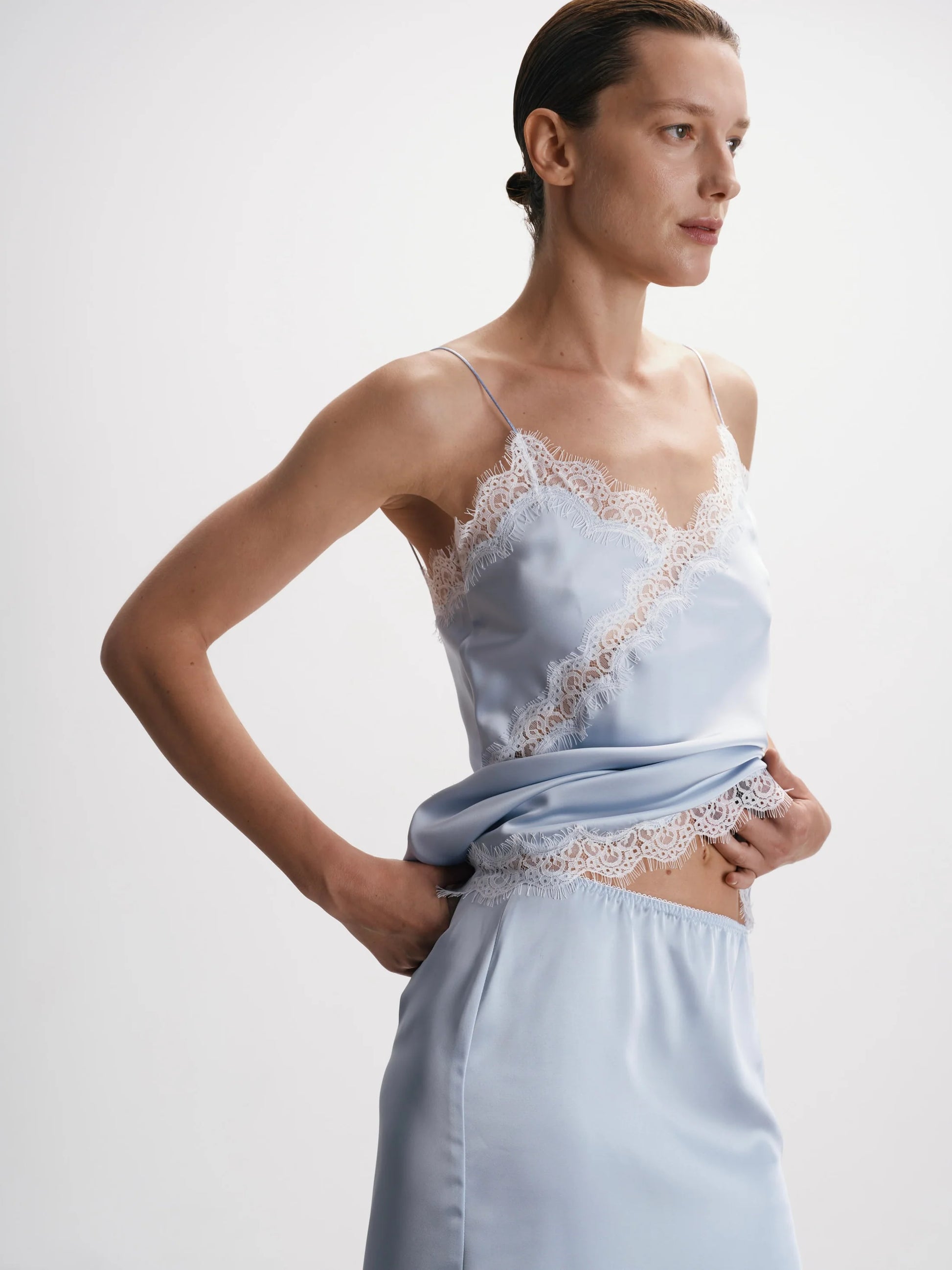 Якщо купити жіночий сатиновий блакитний топ з мереживом, отримаєте універсальну річ, яка гармонійно поєднує ніжность та сучасний стиль!