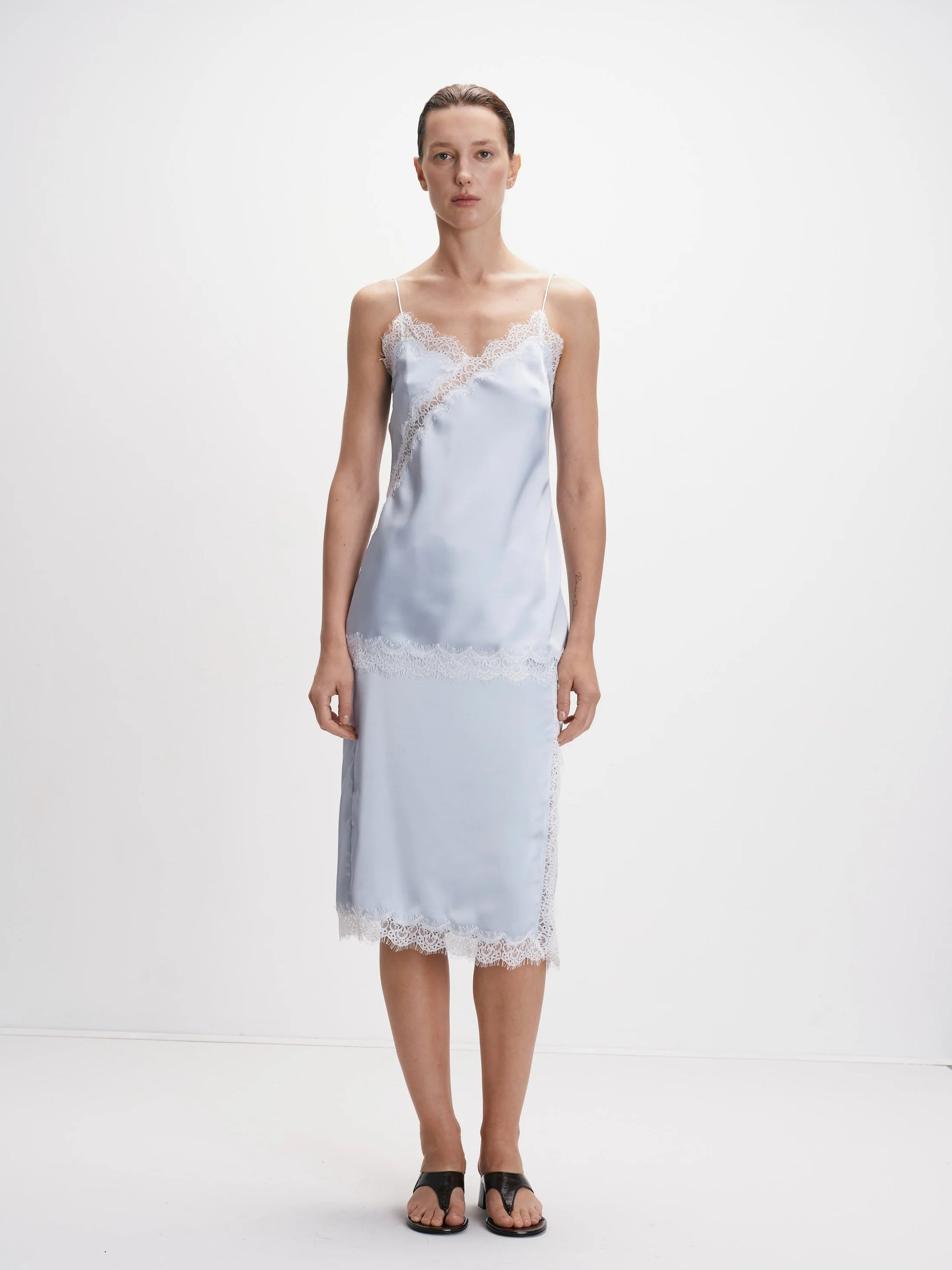CICI COCO САТИНОВИЙ БЛАКИТНИЙ ПОДОВЖЕНИЙ ТОП З МЕРЕЖИВОМ