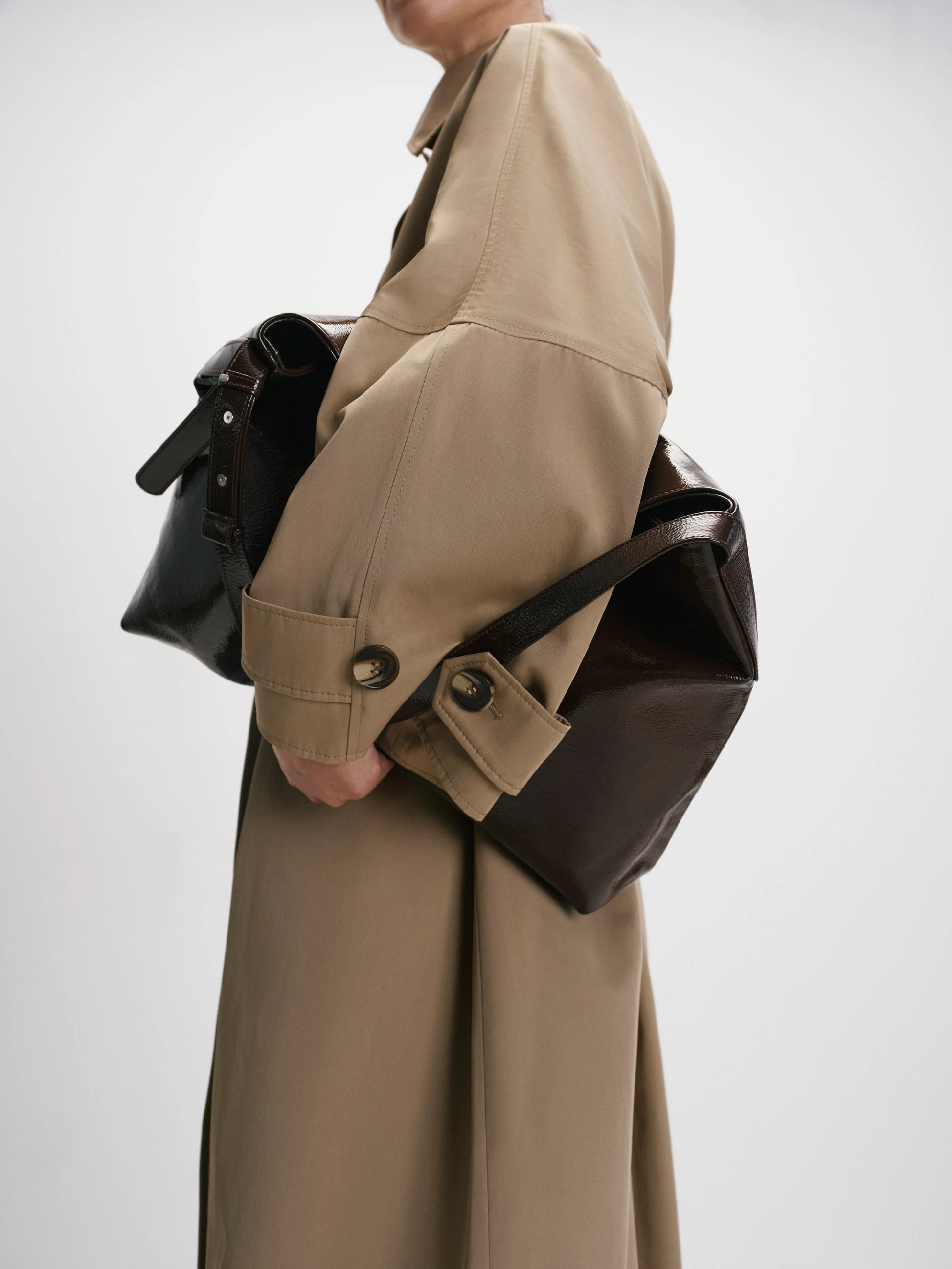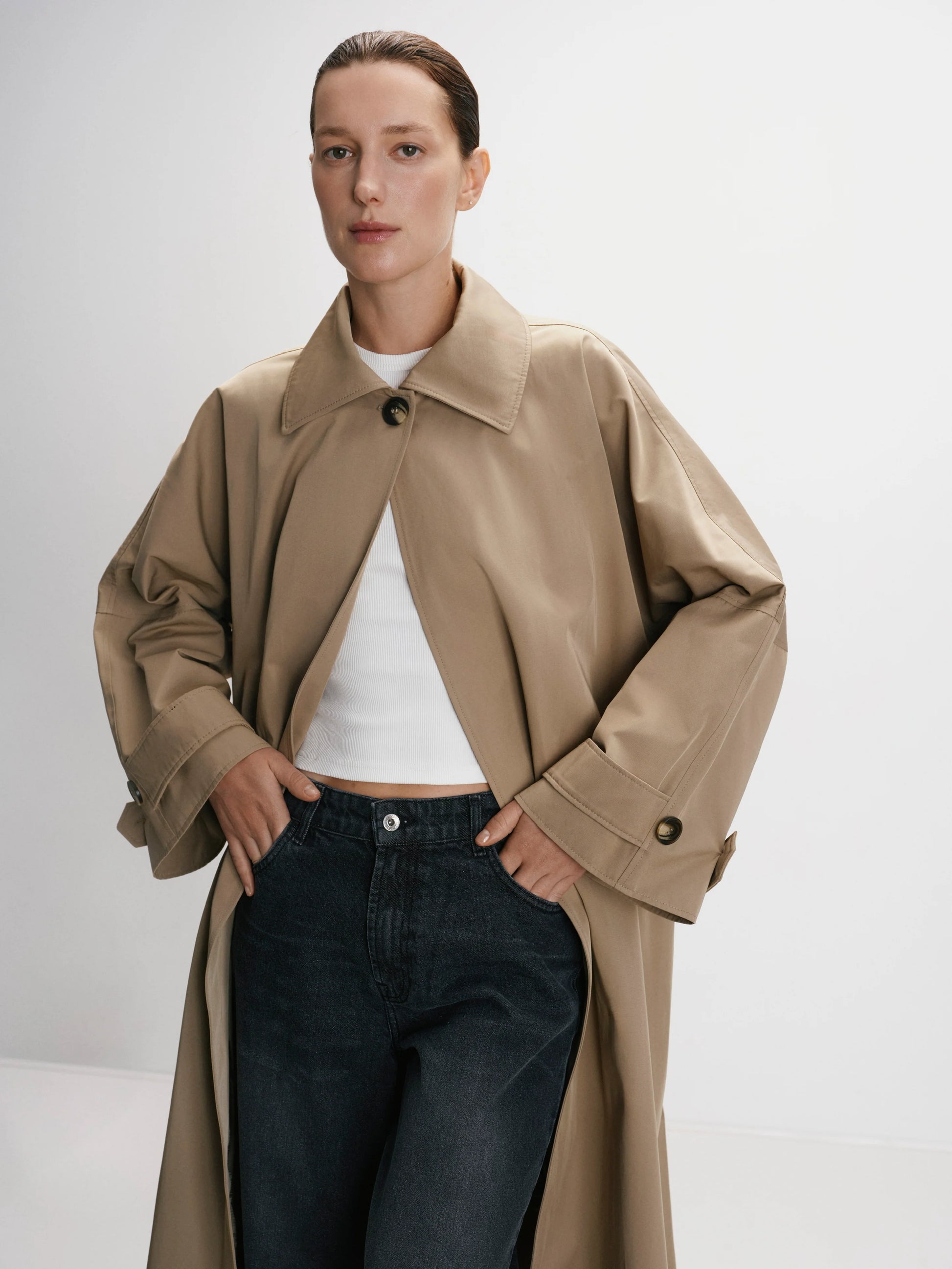 Бежевий жіночий тренч COUTURE максі з поясом – це втілення сучасної класики та витонченості. Насичений відтінок додає образу глибини, а подовжена довжина створює елегантний і стриманий силует. Завдяки оверсайз крою тренч виглядає невимушено, а пояс із ґудзиком дозволяє за бажанням підкреслити талію та зробити образ більш приталеним.
