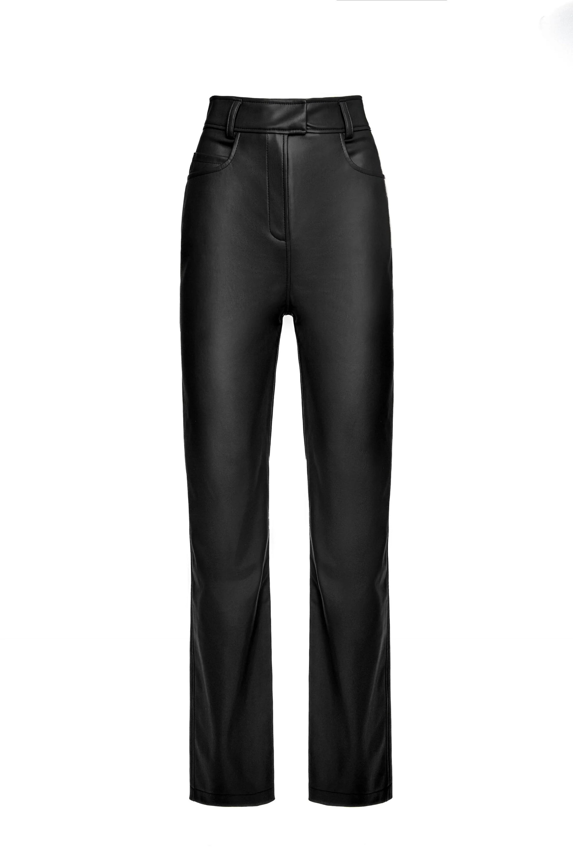 М’яка та еластична еко-шкіра комфортна у носінні, не сковує рухів і зберігає бездоганний вигляд. Штани застібаються на блискавку, гачок і додатковий ґудзик для надійної фіксації.