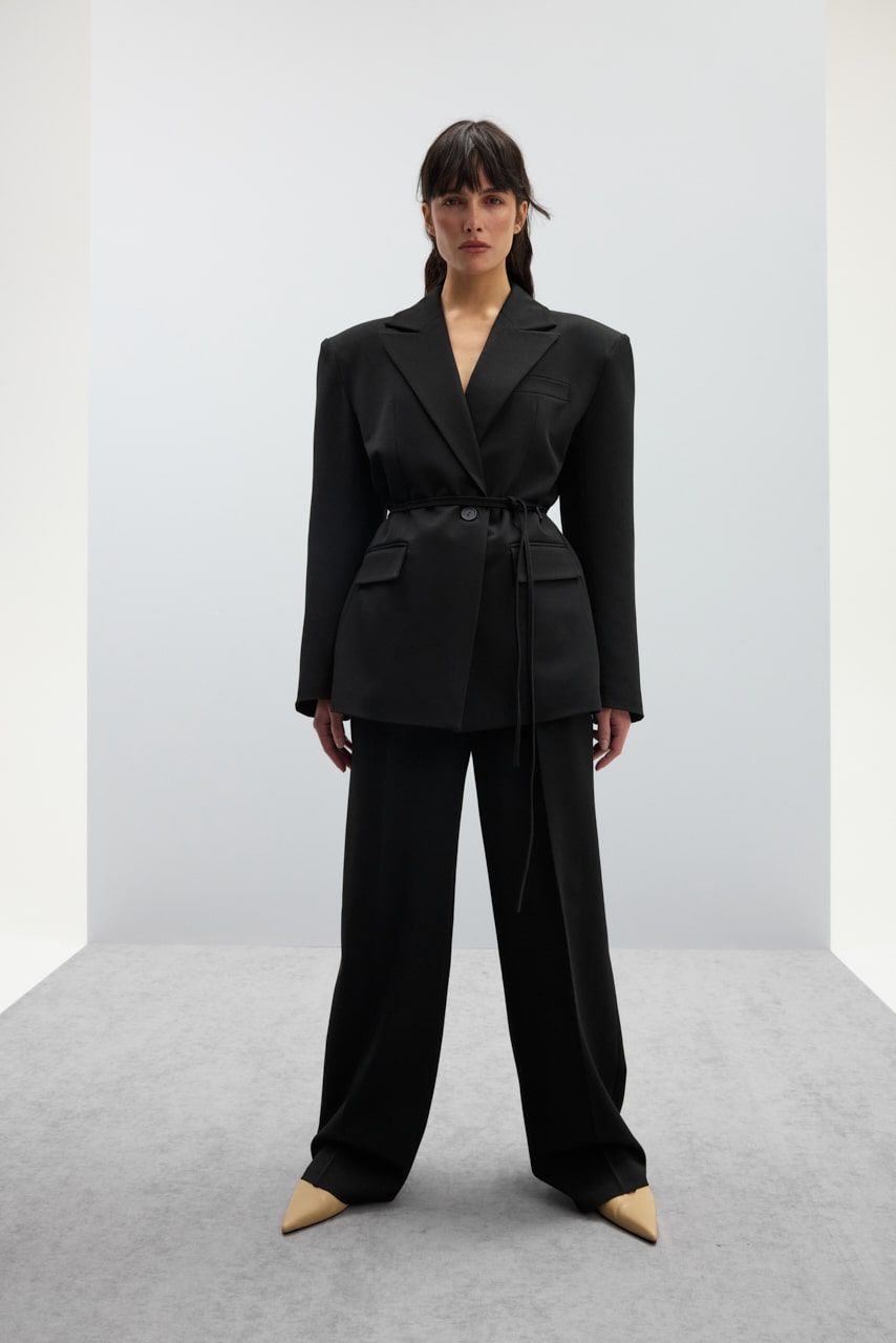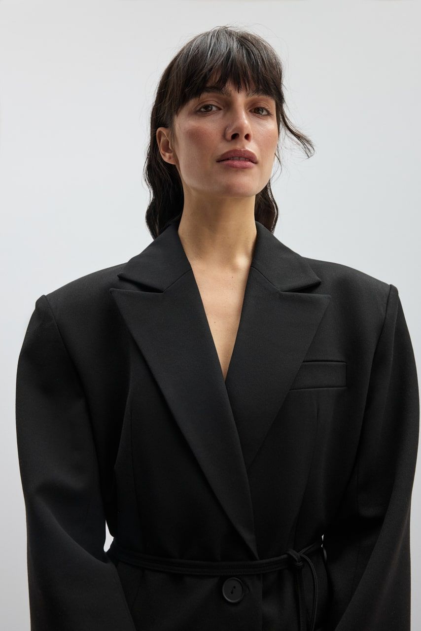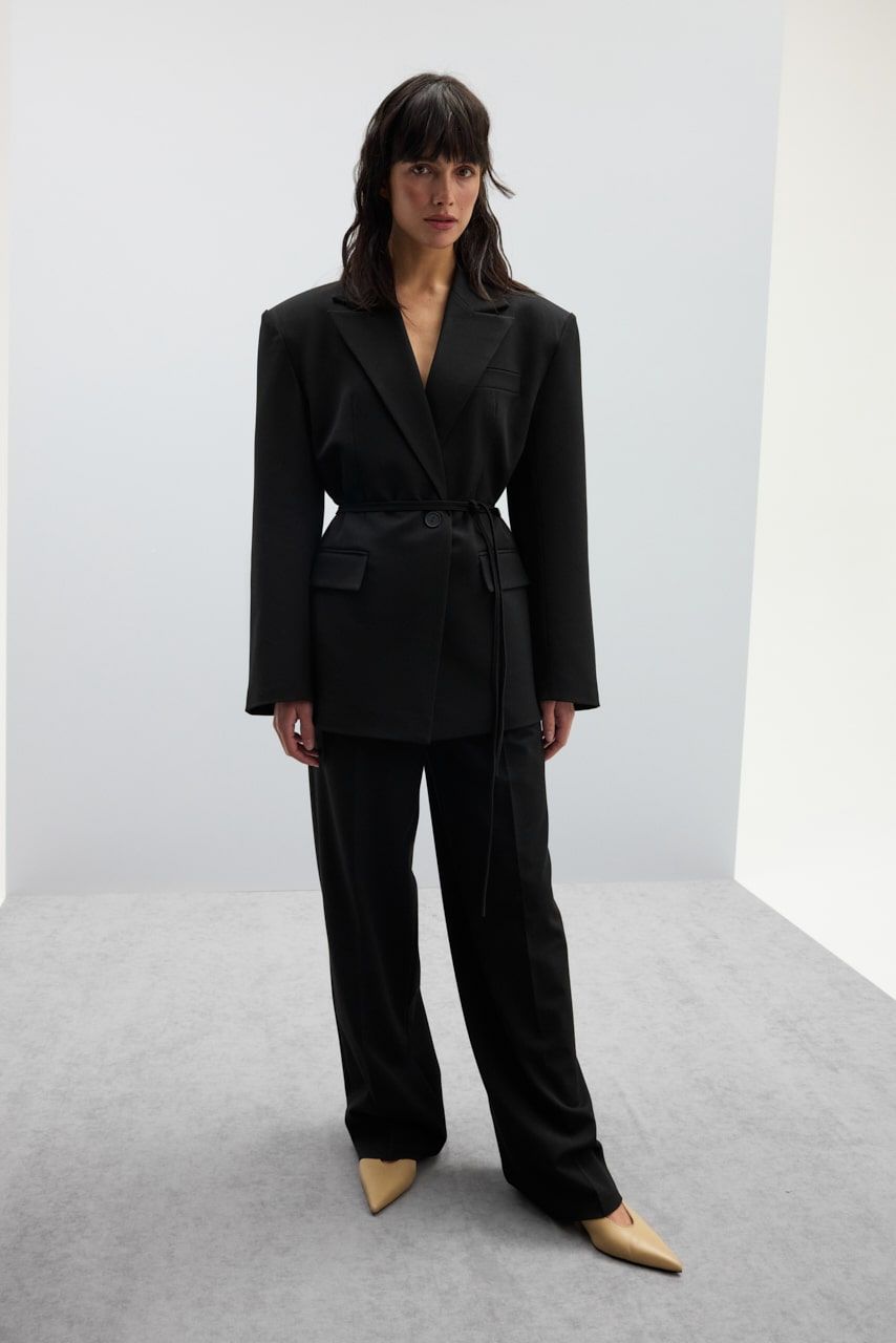 Застібнутим на ґудзики, розташовані вздовж планки. Такий однобортний жакет повністю відповідає стилістиці oversize. Приспущена лінія плеча дозволяє створити трендовий маскулінний образ з ефектом легкої невимушеності.