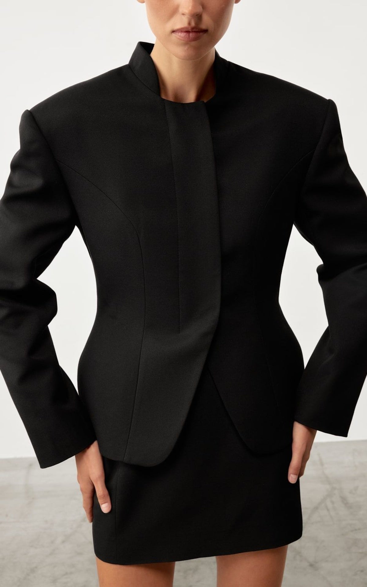 Жакет SIA приталений без лацканів — це сучасне переосмислення класичного жакета. Його лаконізм підкреслює жіночність і силу.