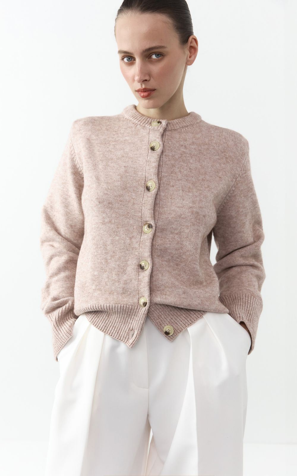 Кардиган KATHIE — затишна й стильна модель, яка стане універсальною частиною осінньо-зимового гардероба. Виготовлений із вовни, він чудово зберігає тепло й виглядає елегантно в будь-якому поєднанні.