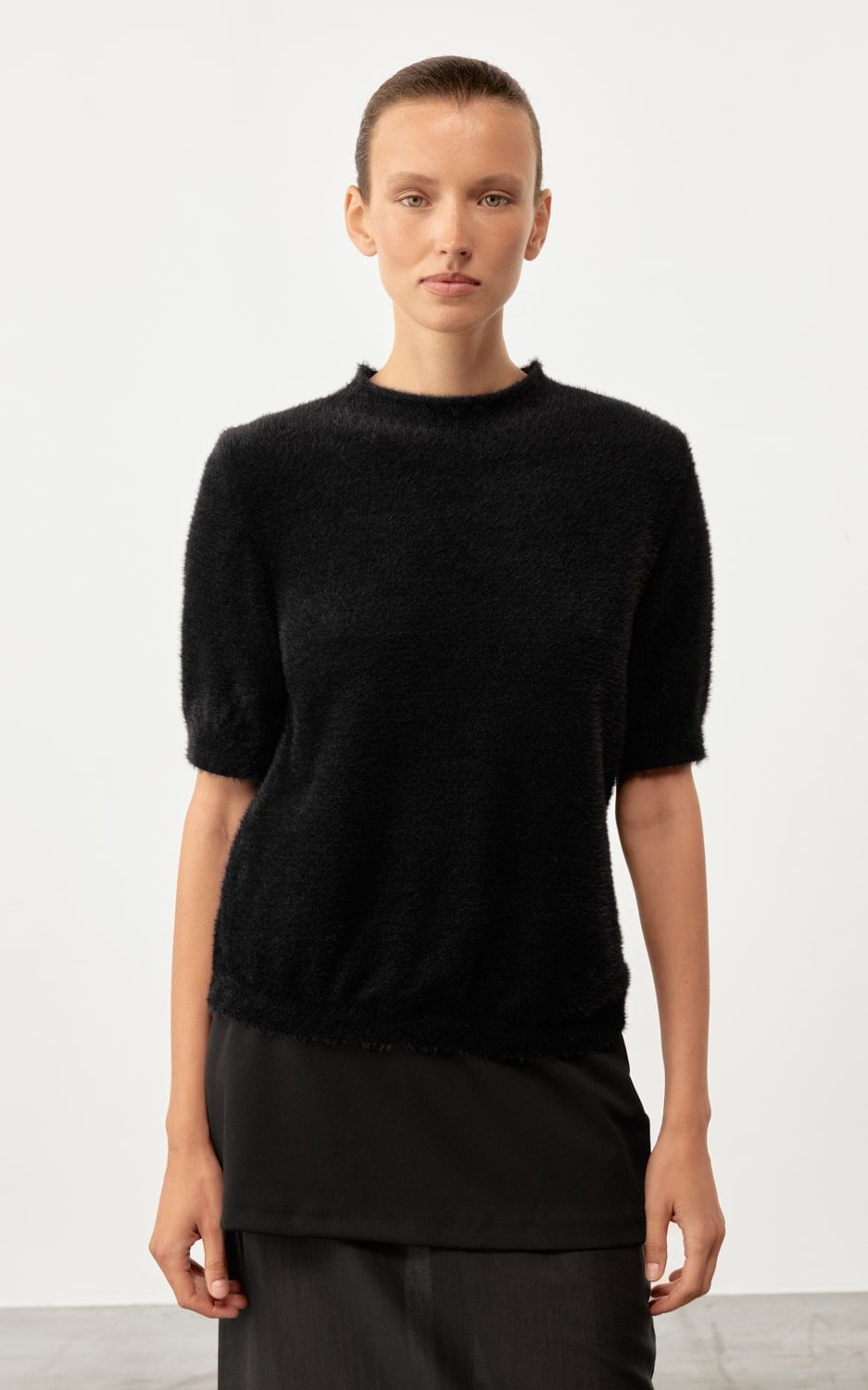 Светр із фактурним ворсом і коротким рукавом допоможе вам створити десятки комфортних розслаблених образів на кожен день. В ньому ви зможете легко рухатися, активно проводити час. Завдяки своїй універсальності цей виріб однаково добре поєднується з будь-якими джинсами, брюками та спідницями. Гармонійно працює у багатошарових образах.