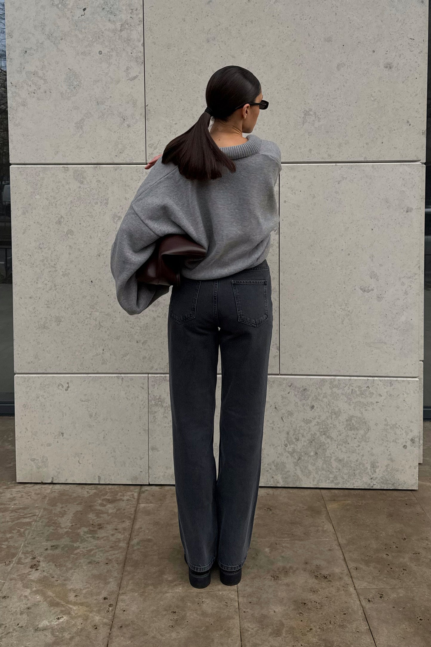 Джинси прямого крою з високою посадкою. Виготовлені з бавовни, що забезпечує комфортну посадку та довговічність. Ідеально підходять для створення базових образів на кожен день — від офісного до повсякденного стилю. Добре поєднуються з об'ємними светрами, сорочками або шкіряними куртками, створюючи стильний та універсальний лук.