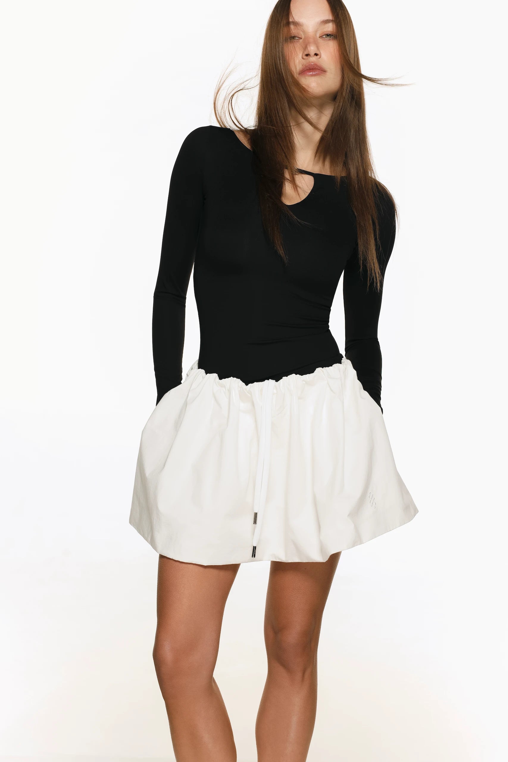 Мініспідниця зі щільного котону, що добре тримає форму та створює структурований силует. Регулюючий шнурок дозволяє варіювати посадку. Спідниця також прикрашена невеликим лого в нижній боковій частині.