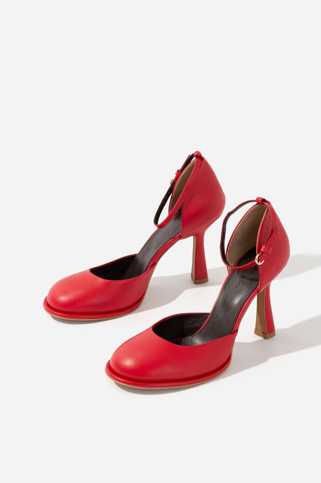 Туфлі з красивою круглою формою носка та ремінцем навколо щиколотки. Модель на підборі висотою 9 см. Взуття виконане з натуральної лакованої шкіри на водній основі. Така обробка шкіри дає їй блиск, але не робить повністю глянцевою. Підкладка у взутті - 100% шкіра. Підошва виконана зі шкірволону - зносостійкого взуттєвого матеріалу. Навколо носокової частини є рант, що захищає взуття від збивання.