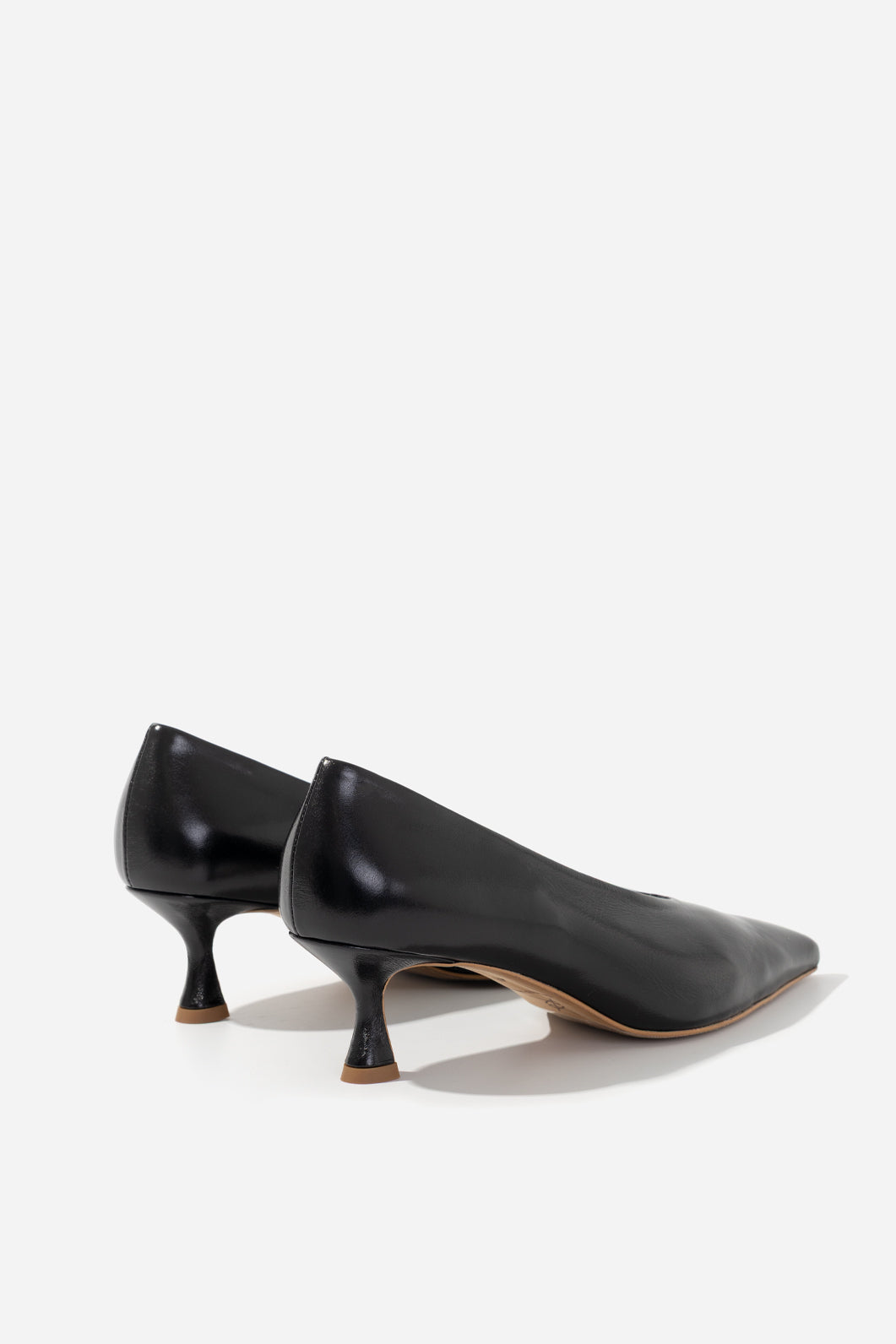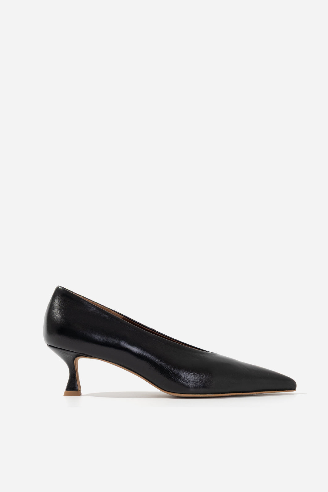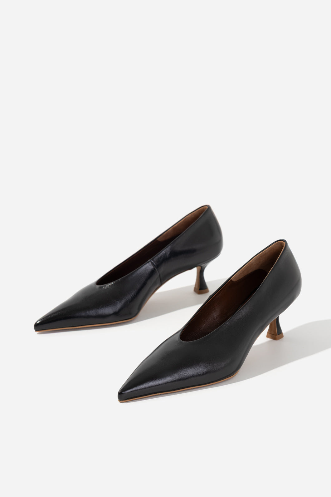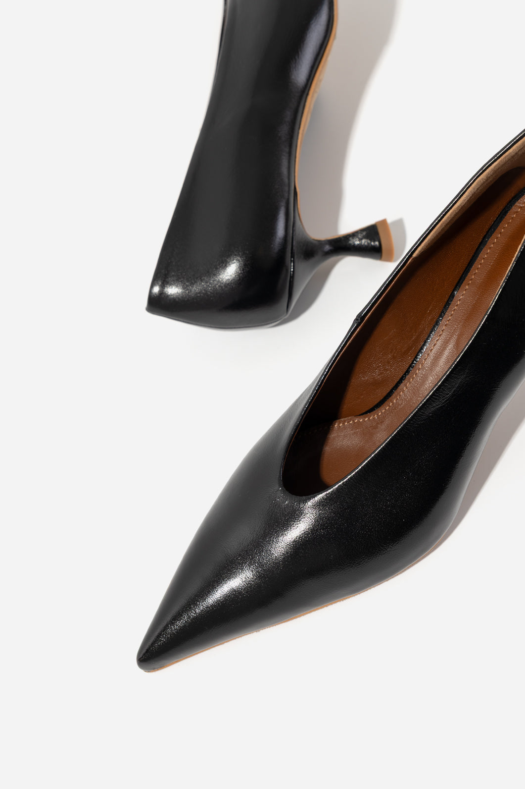 Туфлі-човники на унікальну анатомічну гостроносу колодку, де припіднятий велекий палець, що робить їх зручними та не стискає носок. Модель має вузький спокусливий виріз та фігурний підбор висотою 4 см. Верх взуття виконаний з гладкої лакованої шкіри на водній основі - дуже м'яка шкіра кози з делікатним блиском. Матеріал підкладки - шкіра, матеріал підошви - шкірволон (туніт). Модель повномірна (розмір в розмір). Підходить на не дуже широку стопу за рахунок завуженого носка. Рекомендуємо обирати свій звичний розмір.