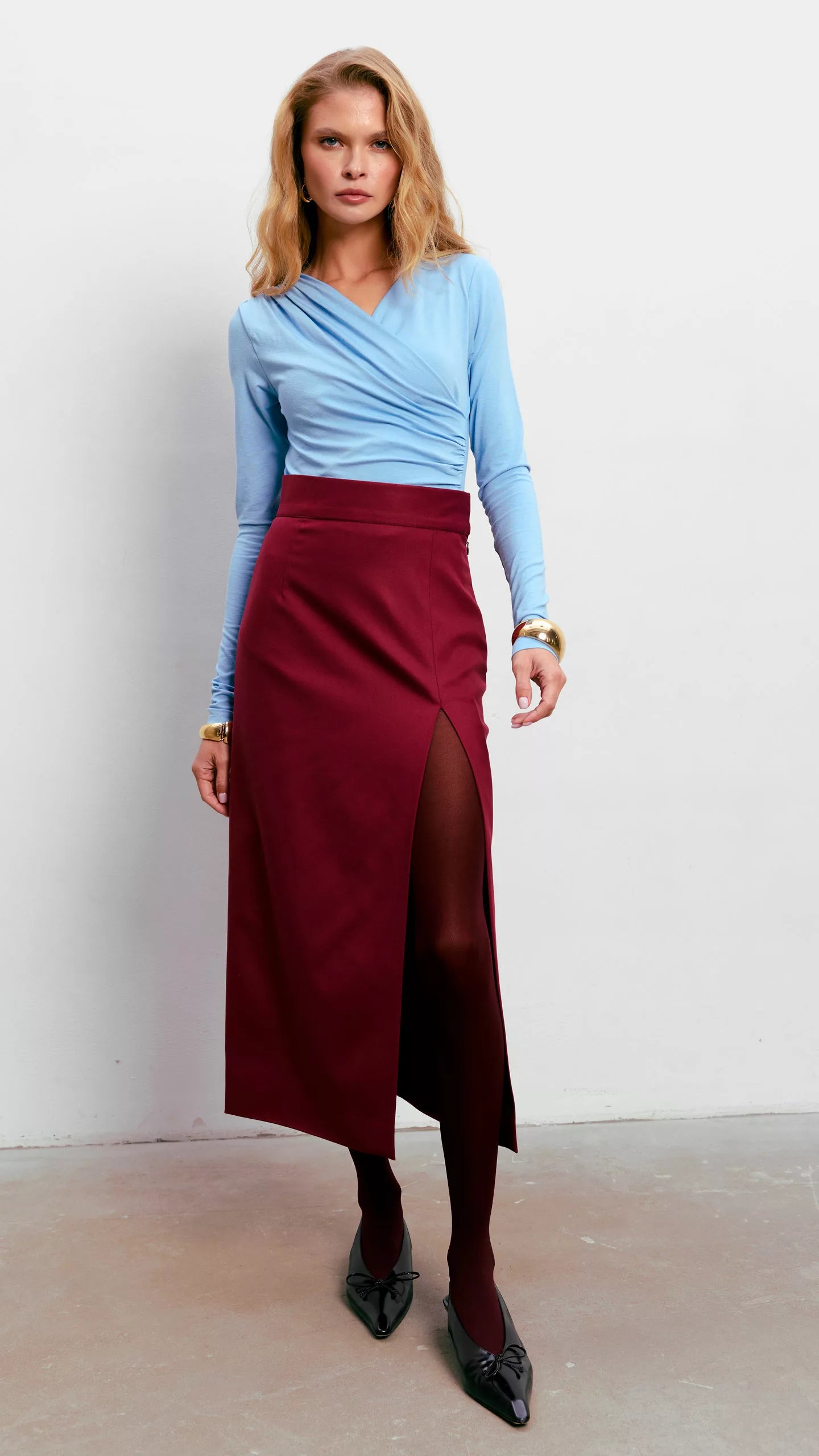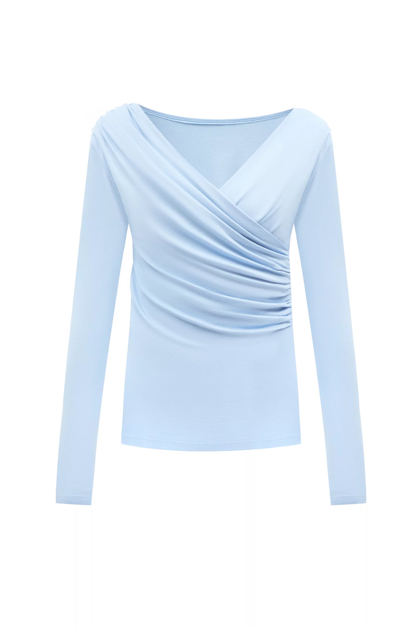Багатофункціональний лонгслів, який за рахунок драпіювання може бути опущений на одне або обидва плеча, виконаний з м’якого трикотажу. Має подовжені рукави.