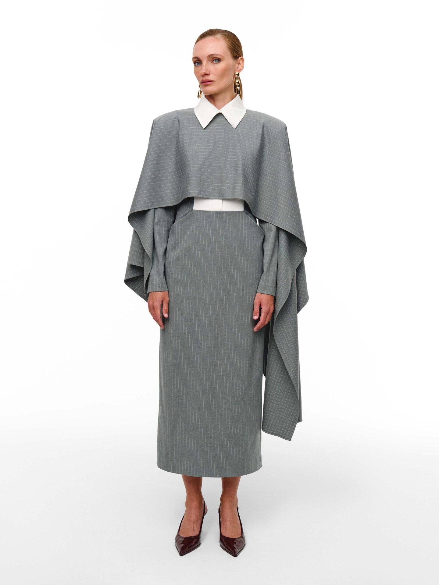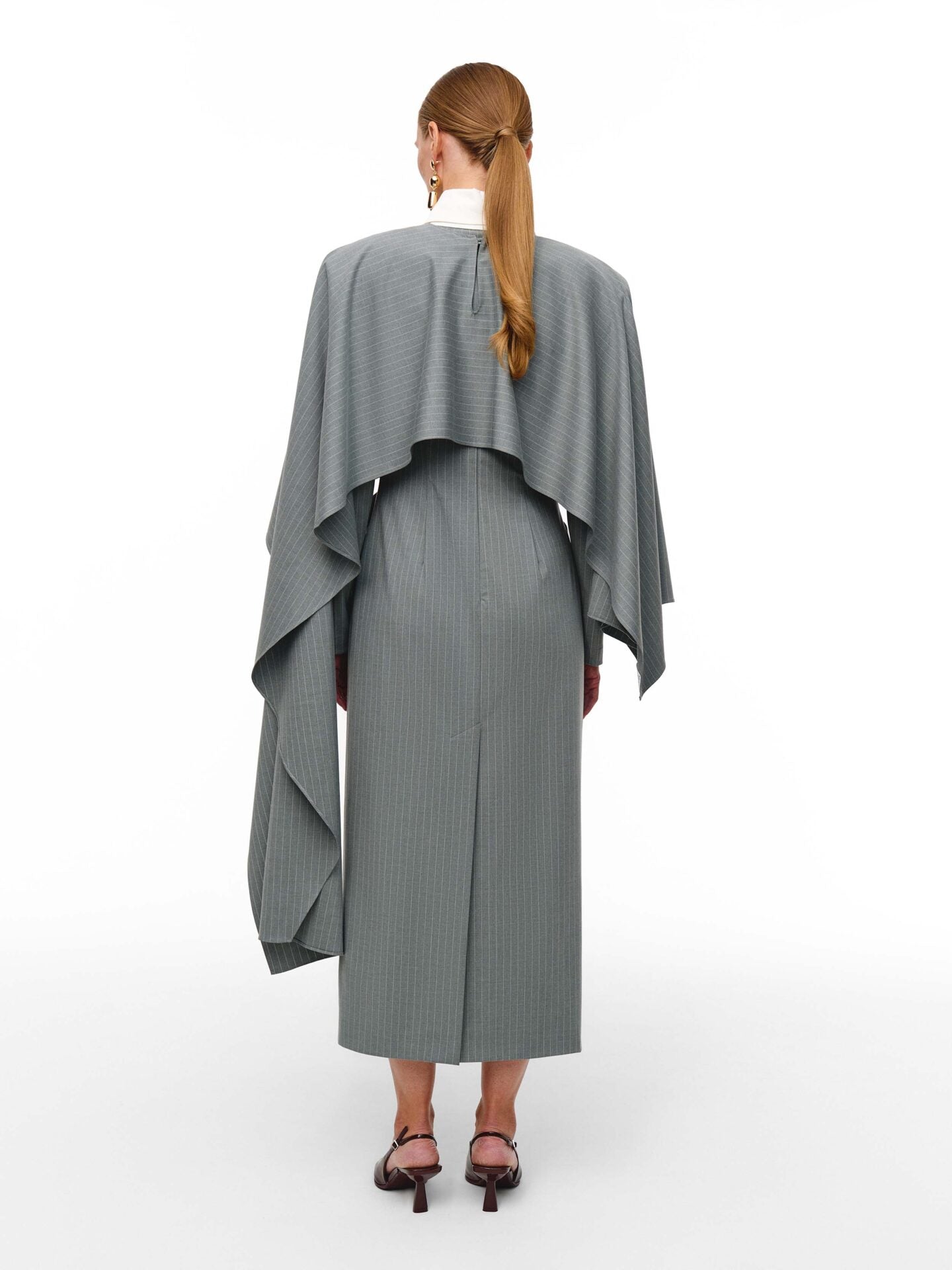 Сукню доповнено сірим кейпом, який можна придбати окремо.