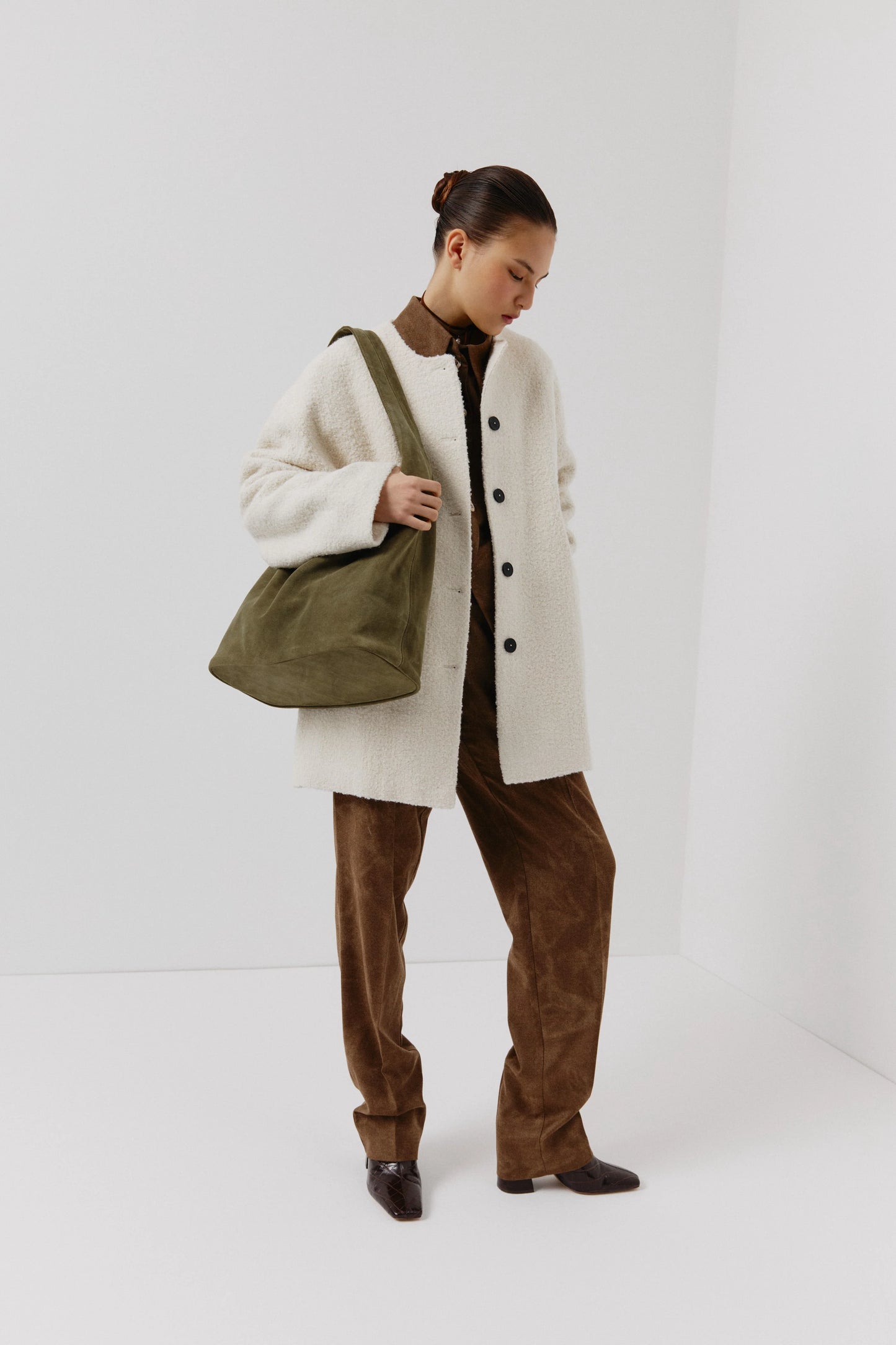 Стильна та містка сумка на кожен день, з надзвичайно м'якої та приємної на дотик Італійської шкіри - спилок-велюр. Всередині має бічну кишеню для дрібниць. Застібається на кнопку магніт.