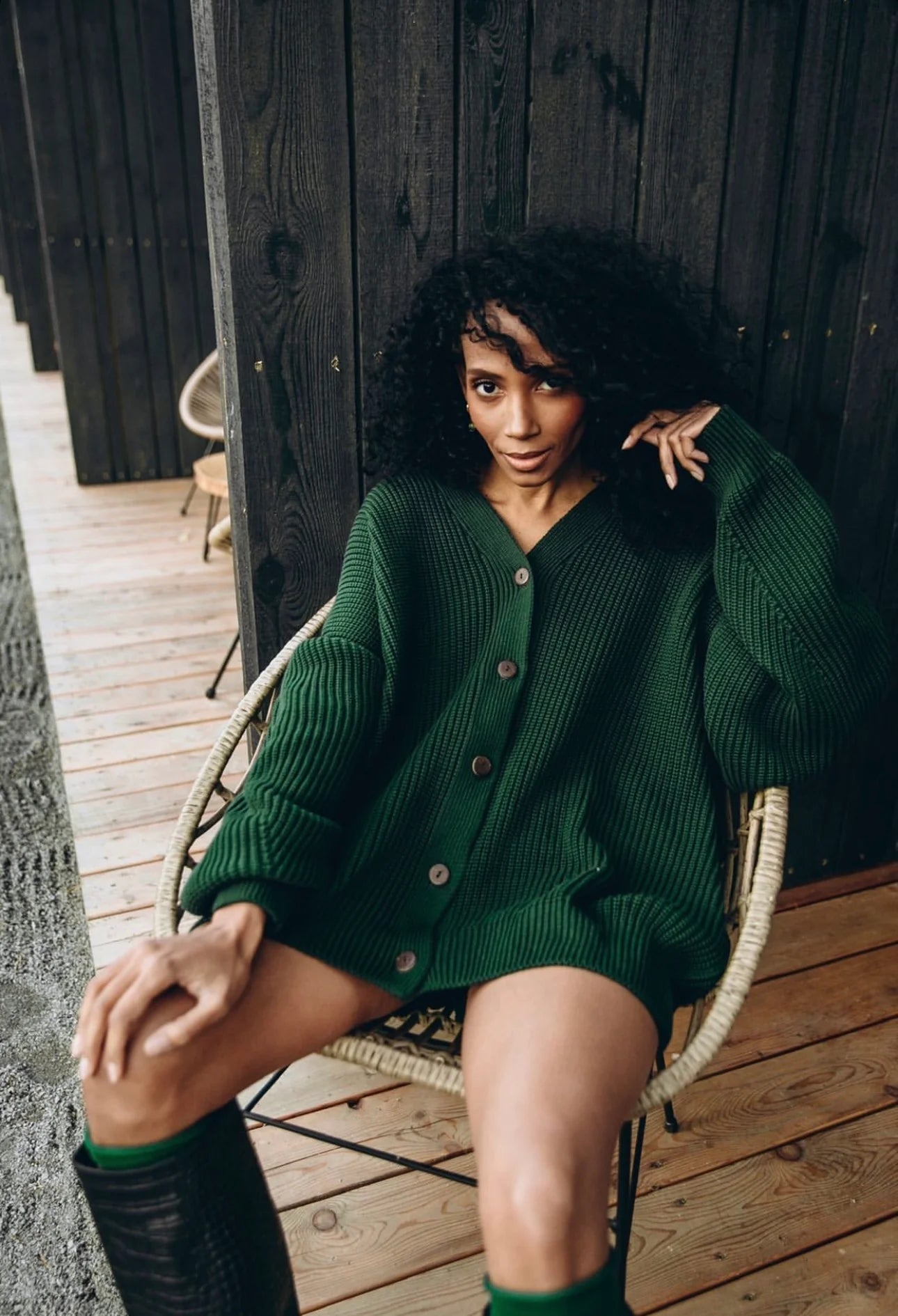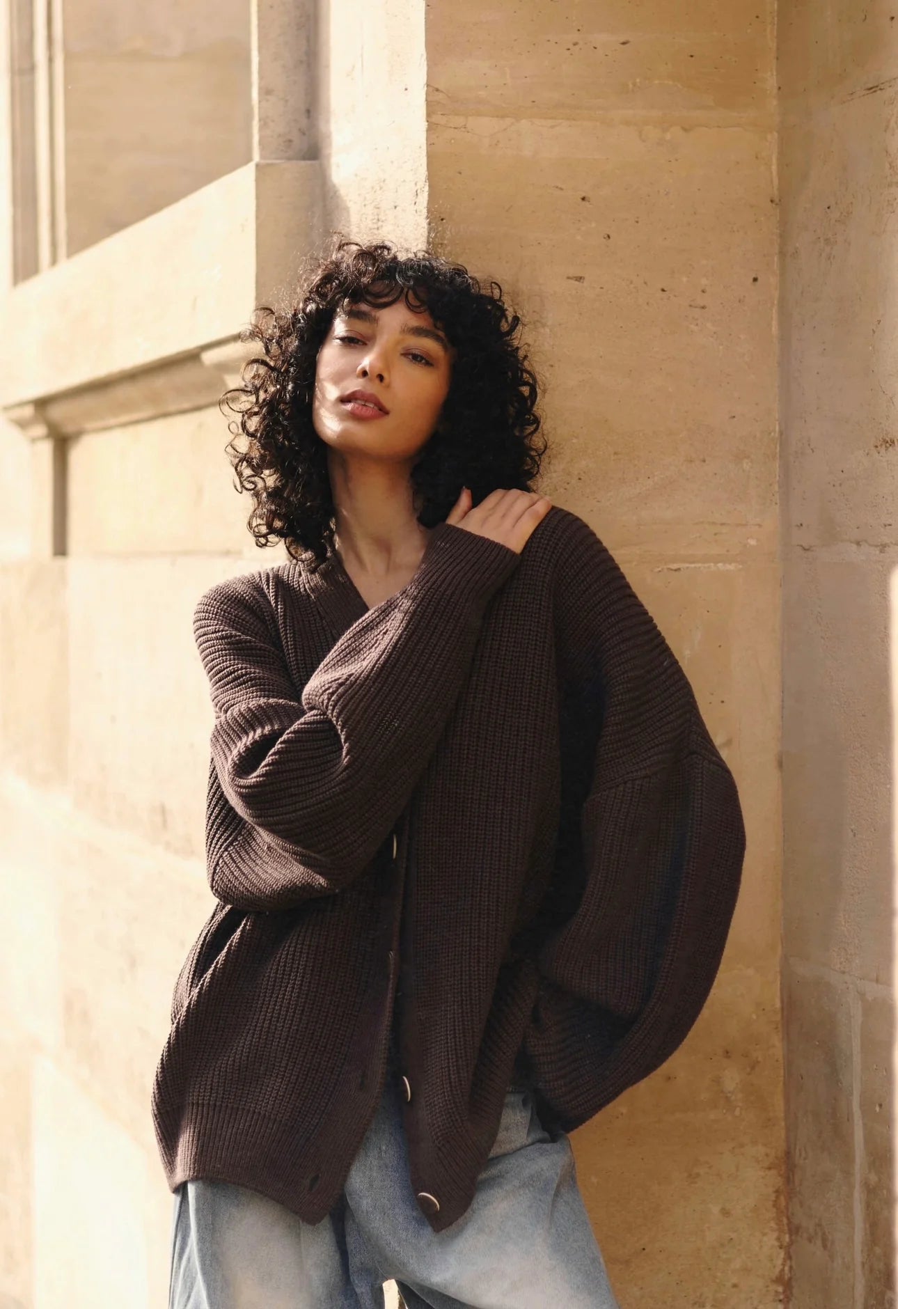 Втілення затишку в сучасному ритмі. Легкий і водночас структурний кардиган із натуральної бавовни створює невимушений силует, який легко вписується у будь-який гардероб. Oversize-крій дарує відчуття свободи та комфорту, а природна фактура тканини робить його універсальним вибором для міжсезоння. Це не просто базова річ — це шар, що додає образу завершеності.