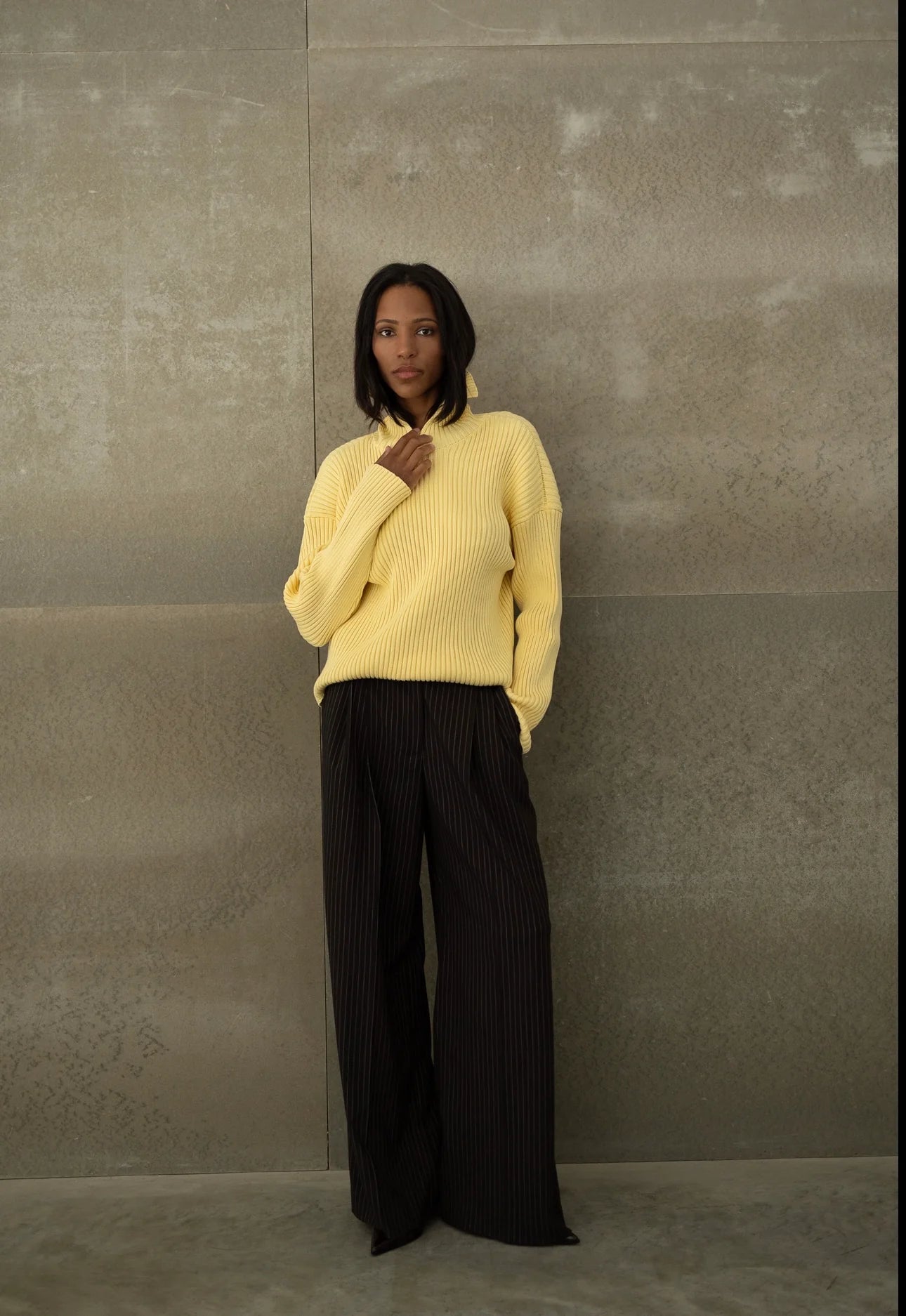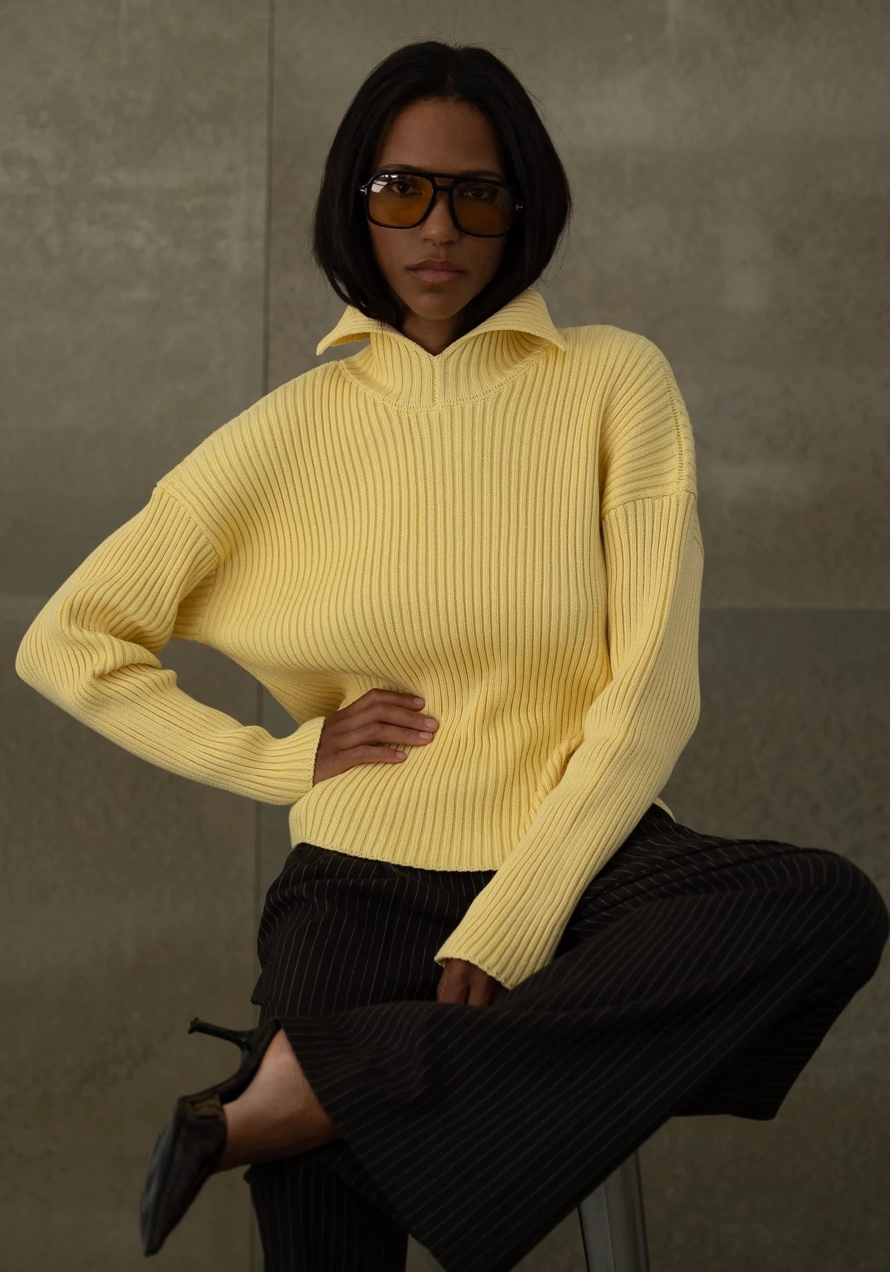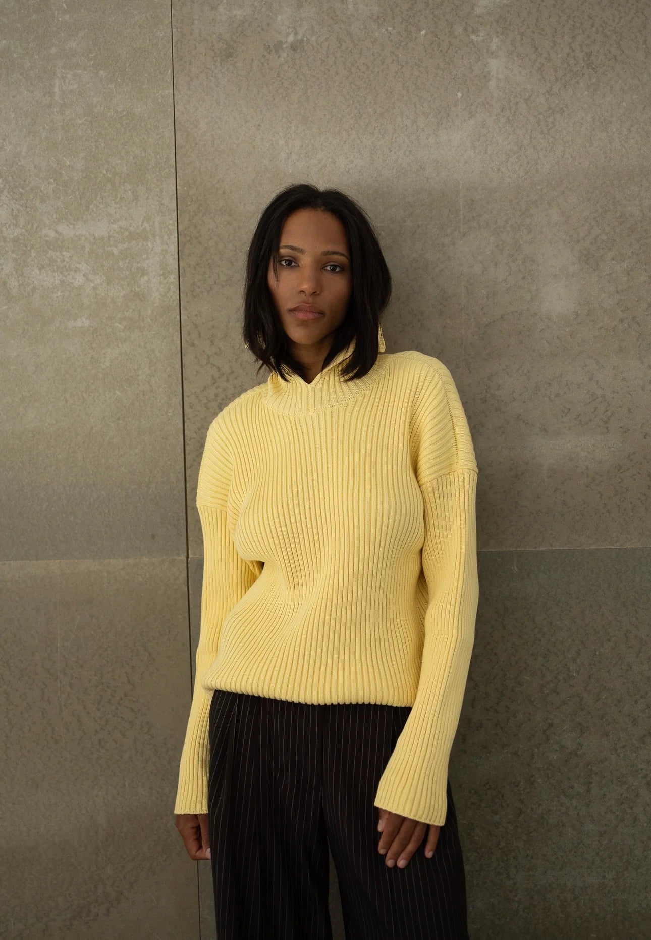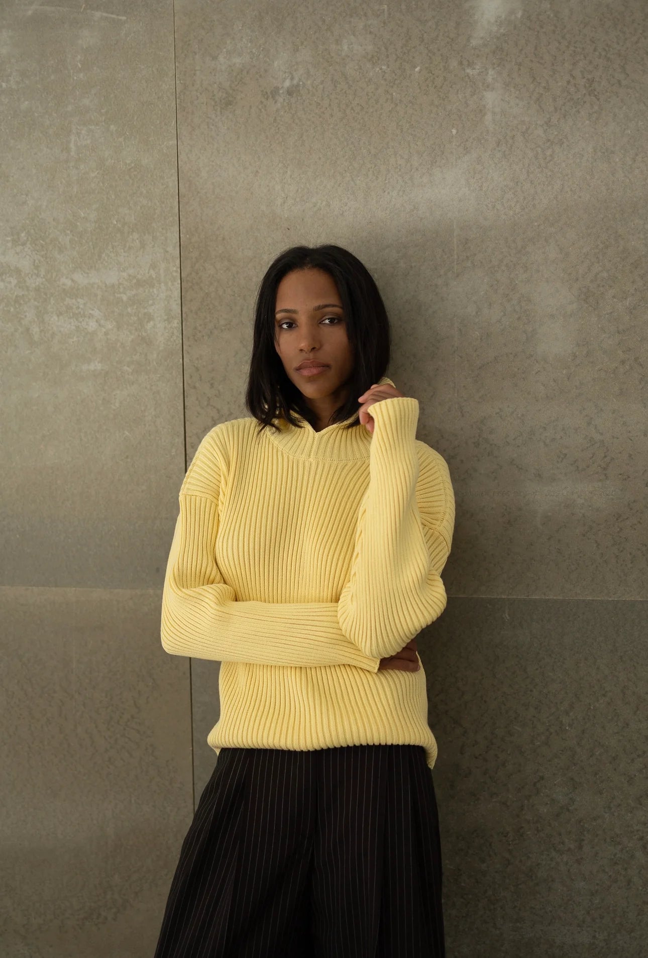 Тактильна насолода в чистому мінімалізмі. Вязаний светр виконаний із натуральної бавовни з виразною ребристою фактурою, яка створює цікавий силует і додає образу глибини. Його універсальність дозволяє носити як у повсякденному ритмі, так і в більш витончених поєднаннях. Це крута річ із характером — стримана, але водночас акцентна.