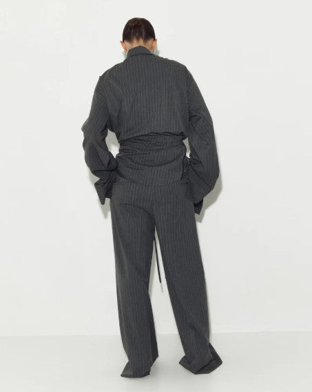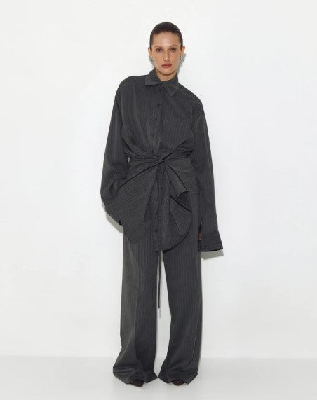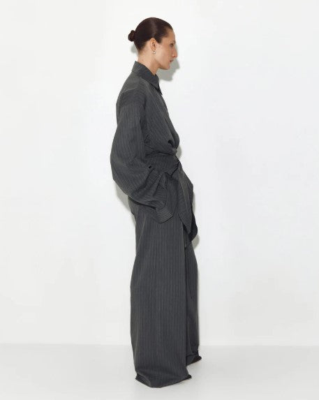 Широкі брюки-палаццо з посадкою на талії. Бічні кишені. Прямий крій. Застібка - блискавка. Чудово поєднуються з сорочкою з колекції.