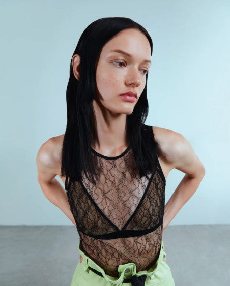 Мереживна майка-топ з сітчастої тканини. Застібка - кнопки.