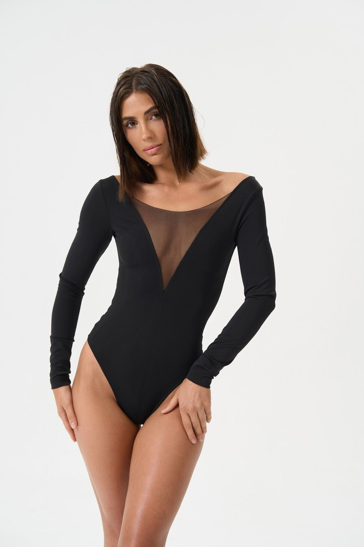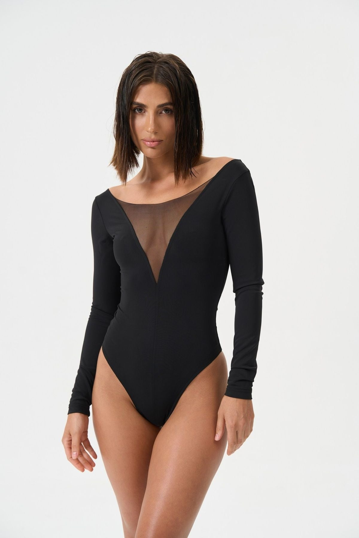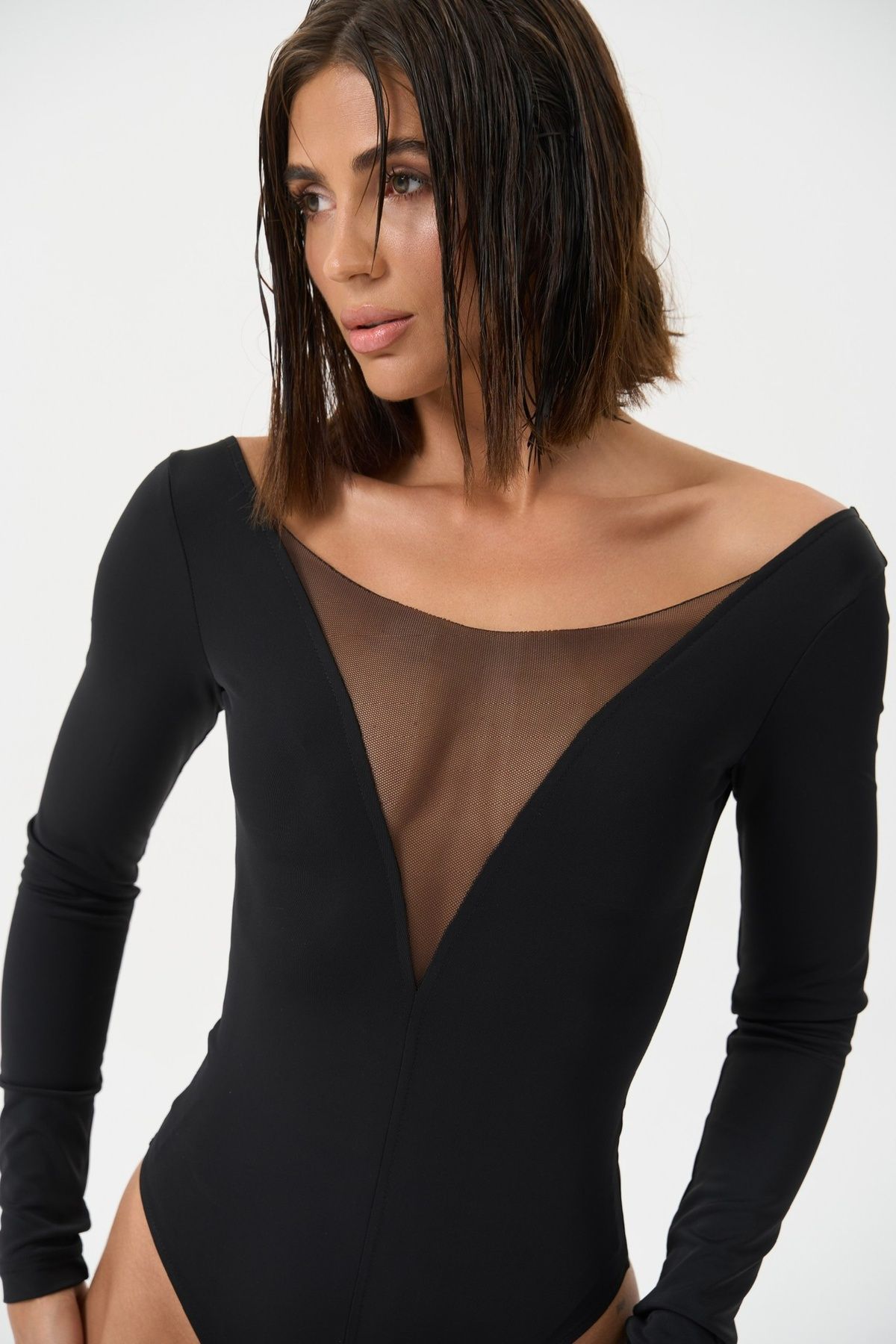 SILUET Боді з довгим рукавом комбіноване з сіткою колір чорний