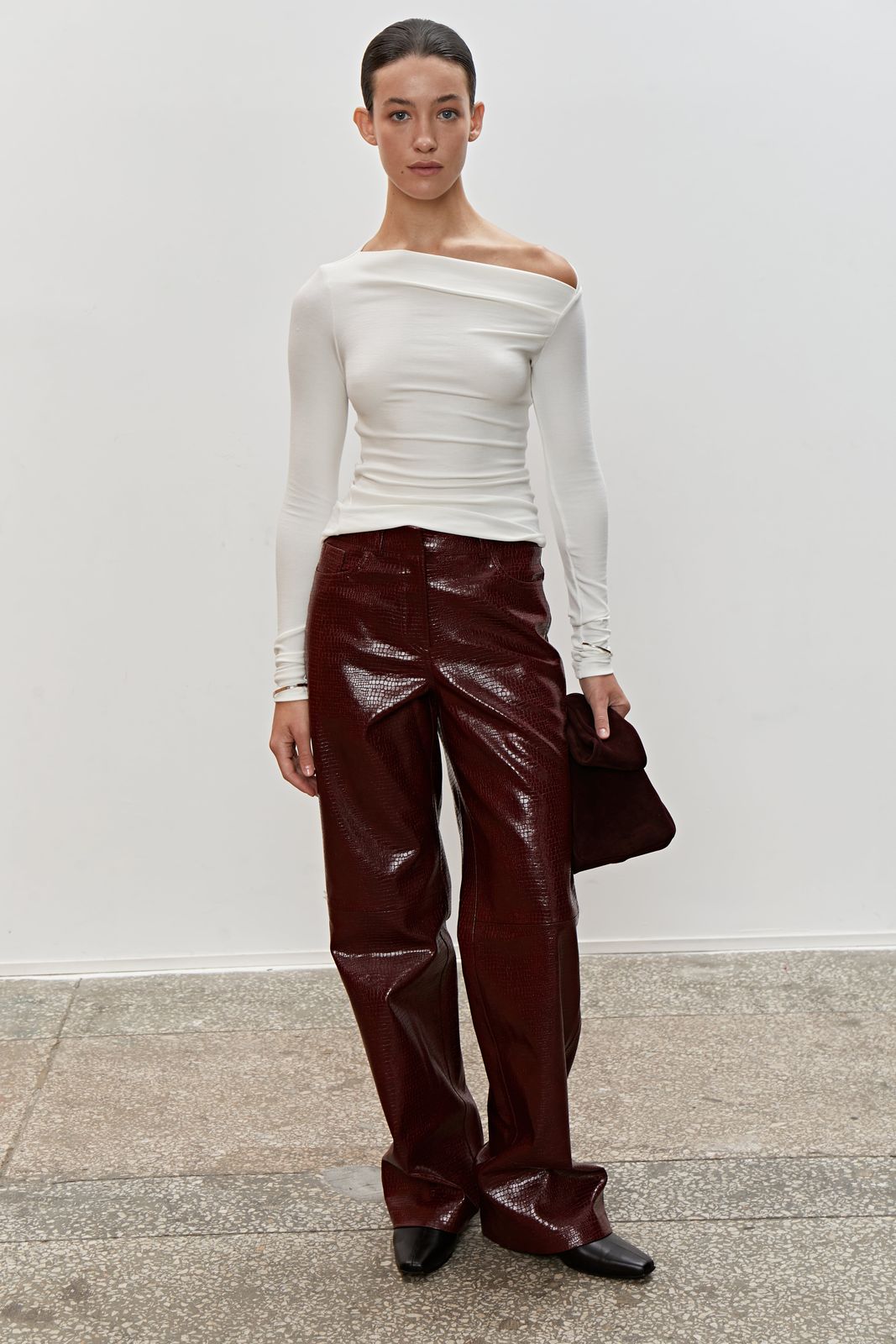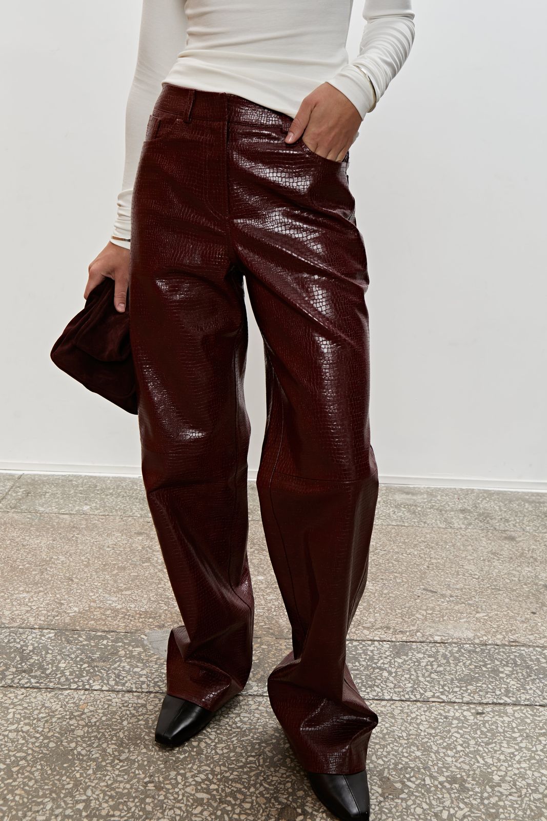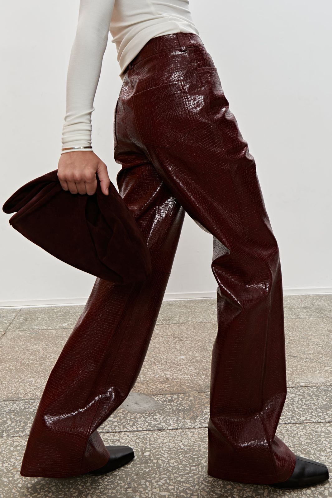 COOSH ШТАНИ З ФАКТУРНОЇ ЕКОШКІРИ, бордові