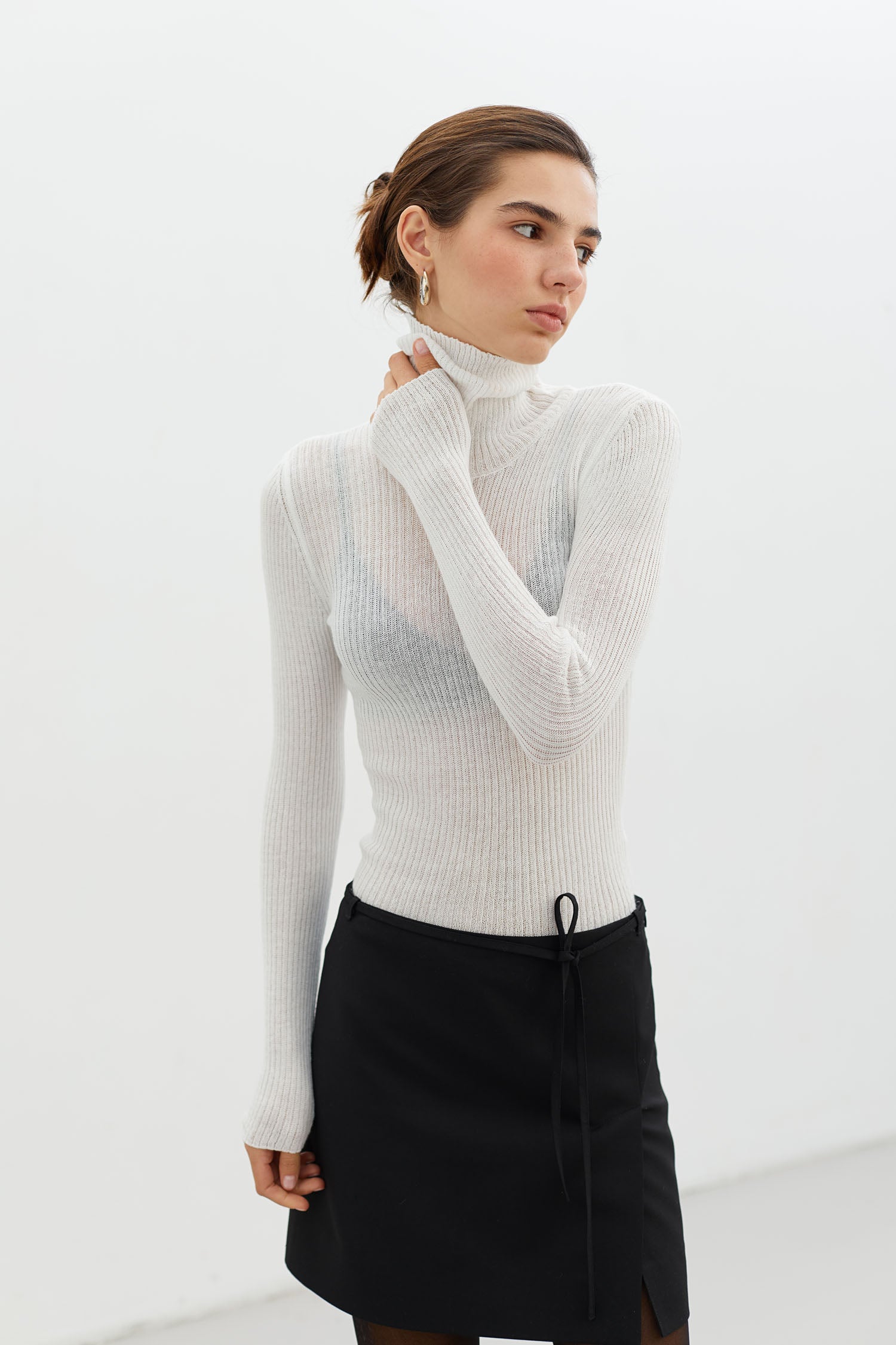 THE LACE Жiночa водолазка тонка в рубчик молочна