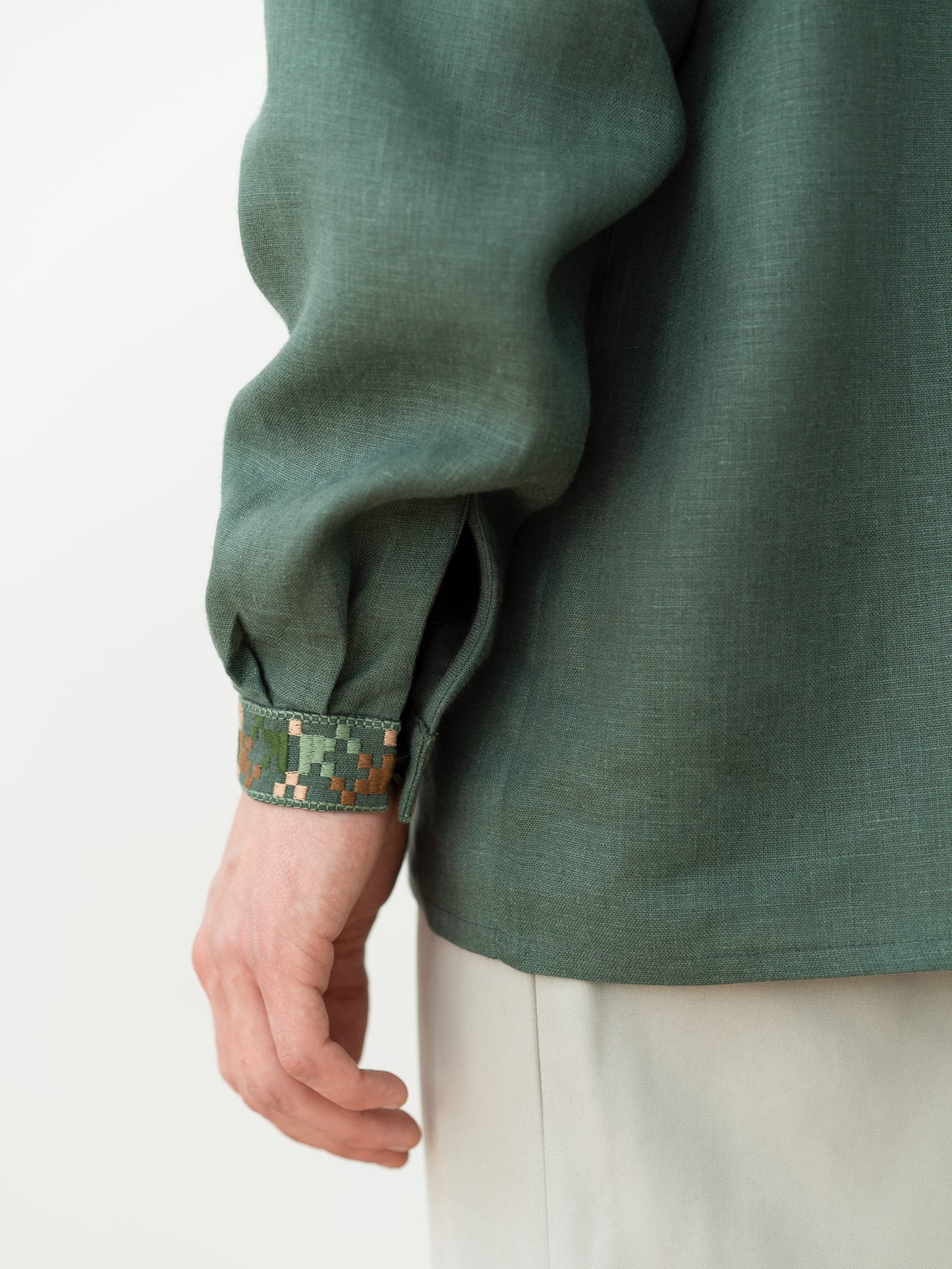 Кольори сорочки та вишивки виконані у мілітарі-стилі, що підкреслює незламність українського народу.